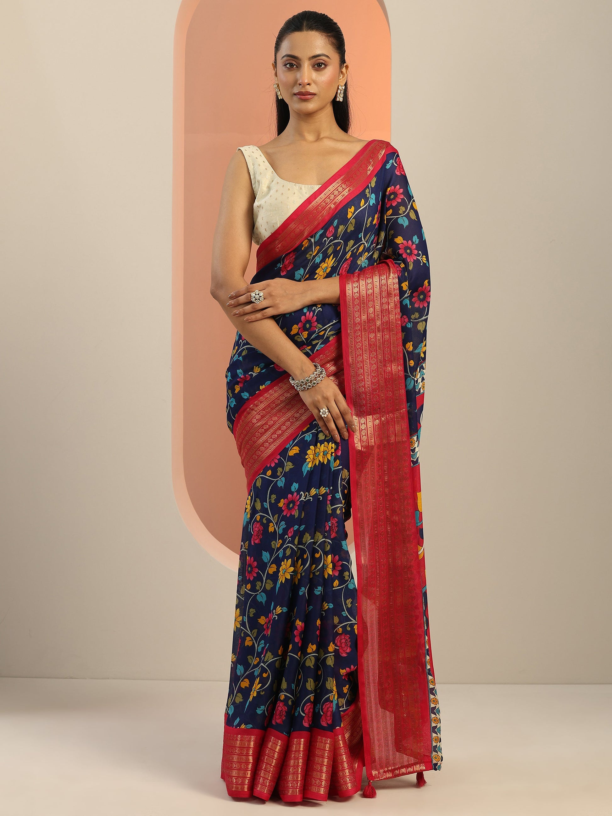 Our Navy Blue Printed Georgette Saree Features Captivating Woven Design. Complemented With A Unstitched Blouse Piece. This Charming Saree Is Perfect For Festive Wear.