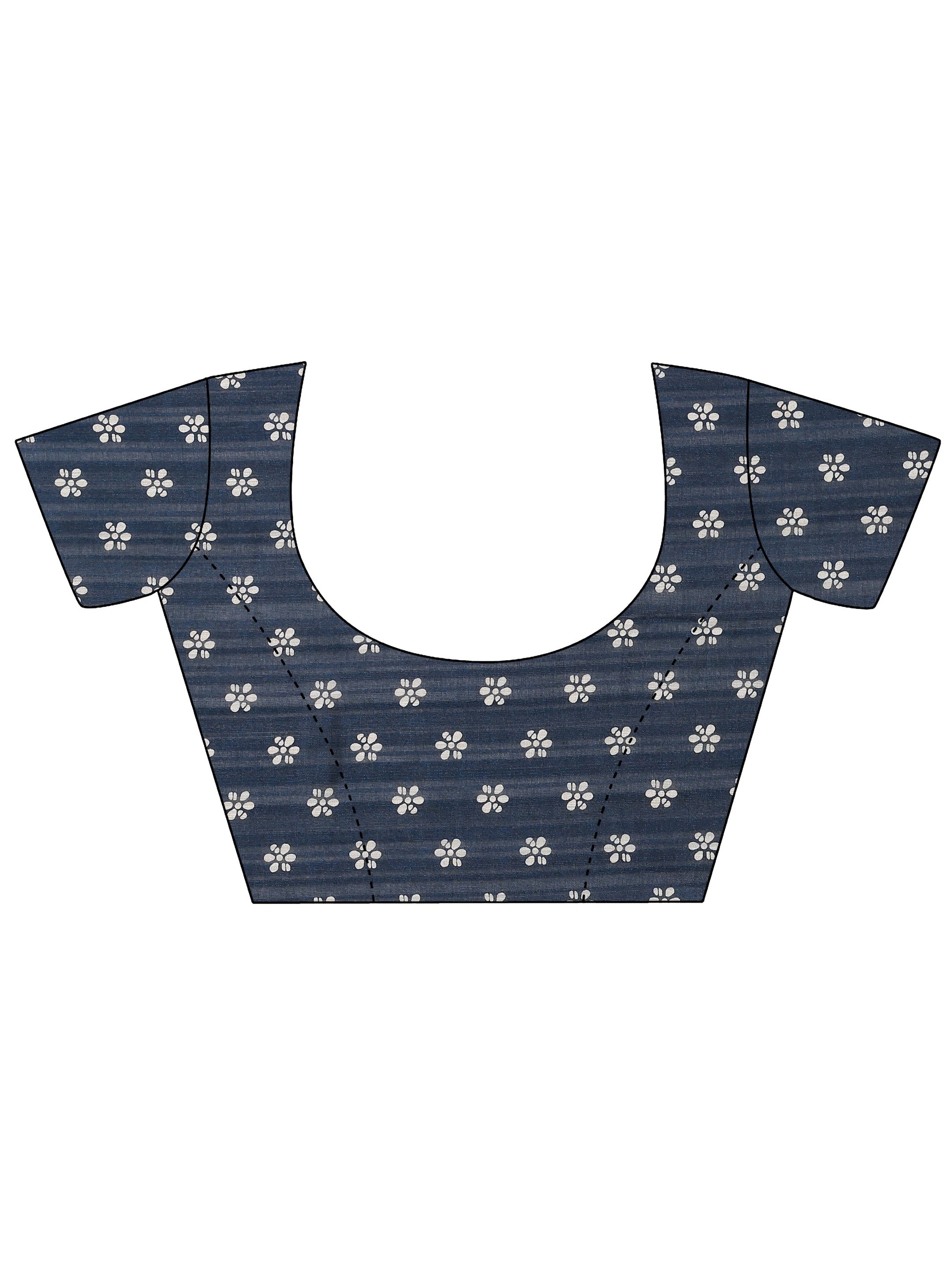 Blue Printed Silk Blend Saree With Unstitched Blouse Piece