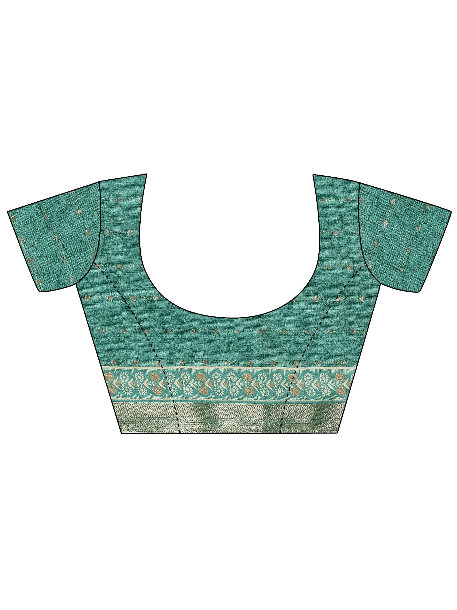 Our Teal Printed Silk Blend Saree Features Captivating Tribal Printed Design. Complemented With A Unstitched Blouse Piece. This Charming Saree Is Perfect For Festive Wear.