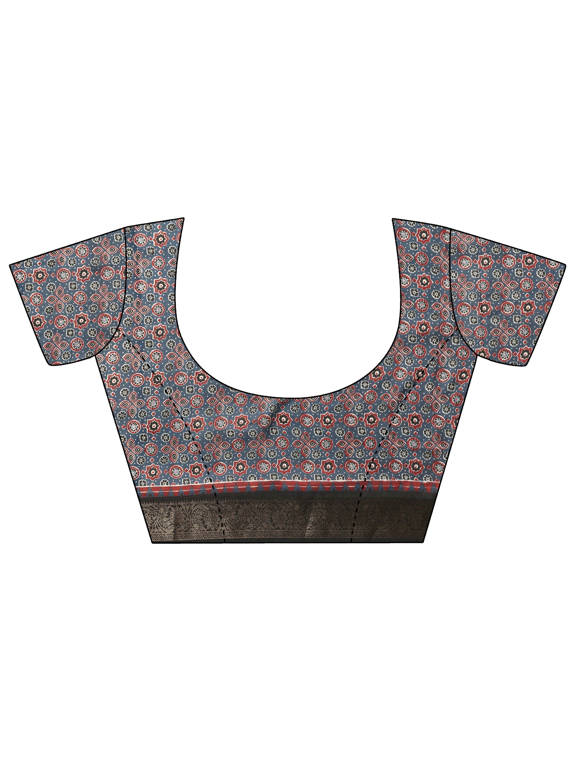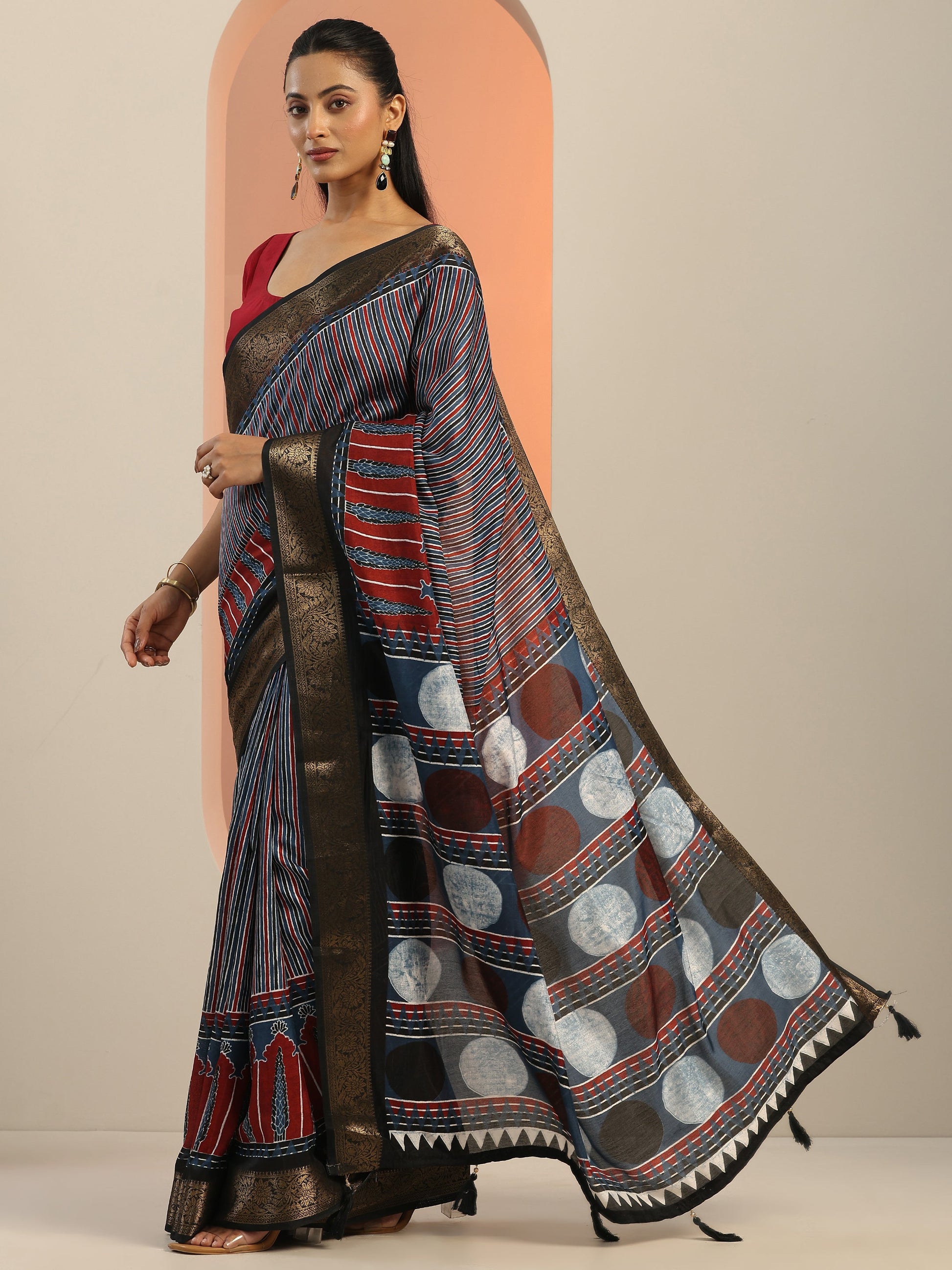 Blue Printed Silk Blend Saree With Unstitched Blouse Piece