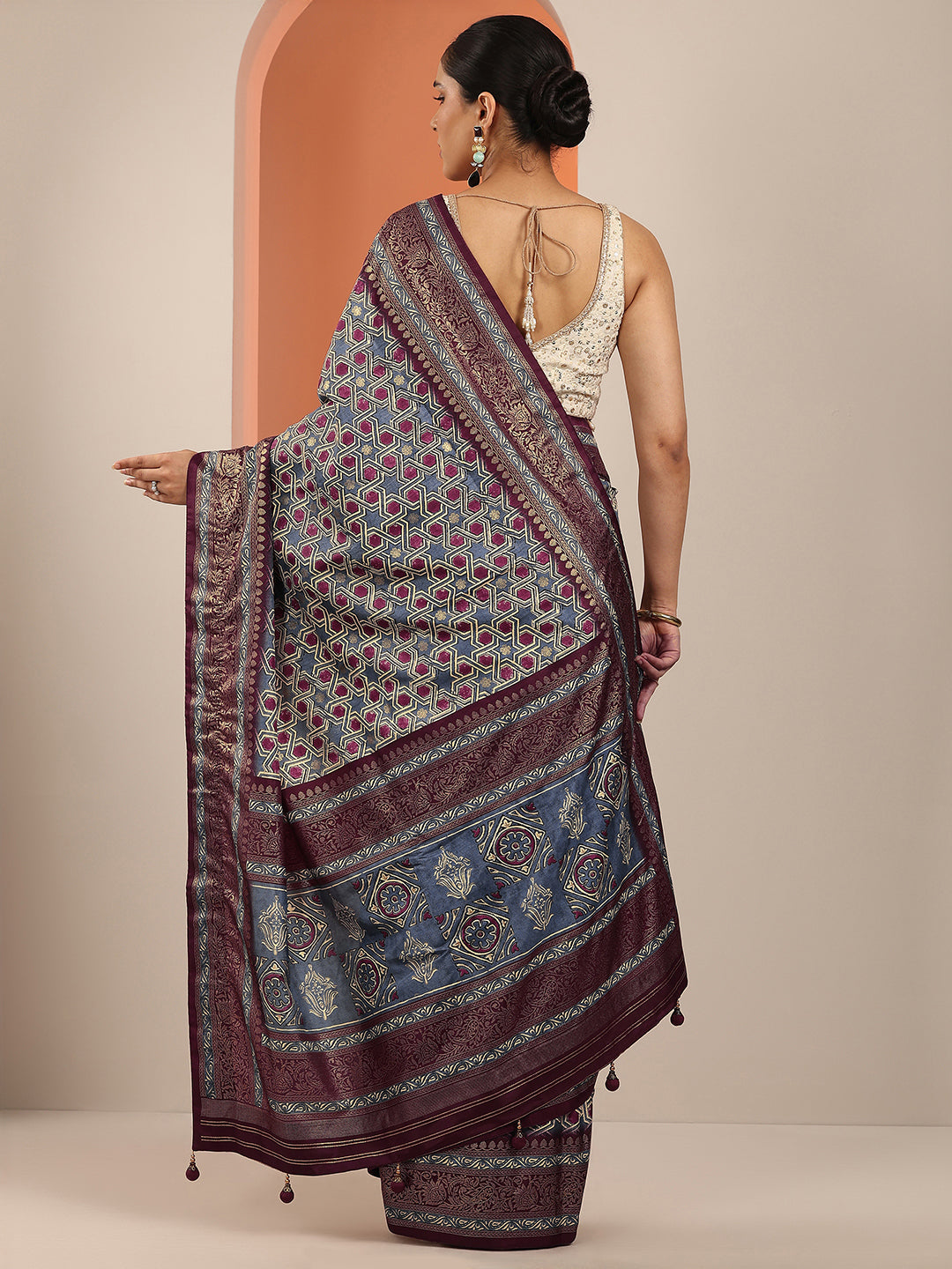 Our Blue Printed Silk Blend Saree Features Captivating Ethnic Motif Print. Complemented With A Unstitched Blouse Piece. This Charming Saree Is Perfect For Festive Wear
