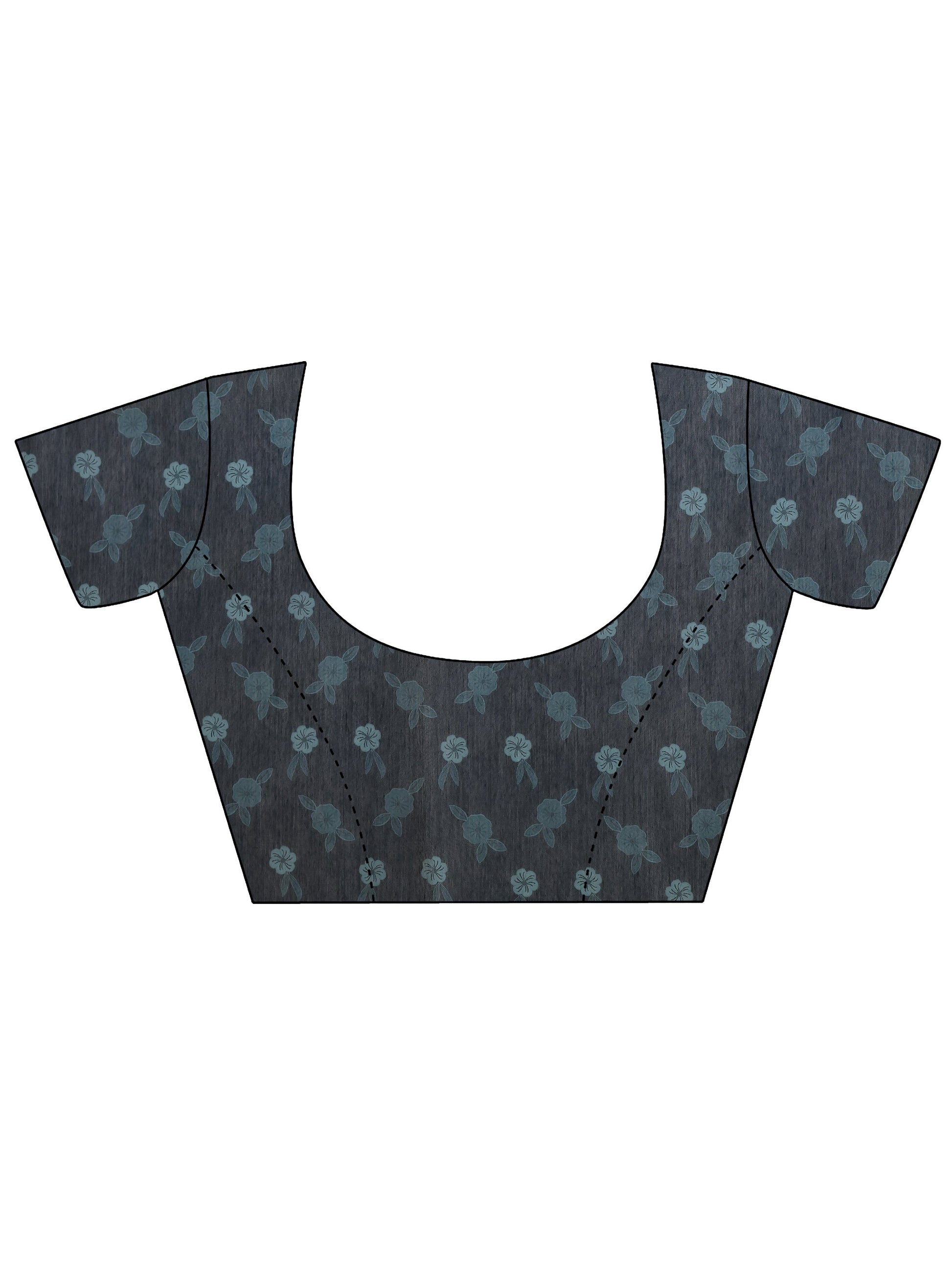 Blue Printed Silk Blend Saree With Unstitched Blouse Piece