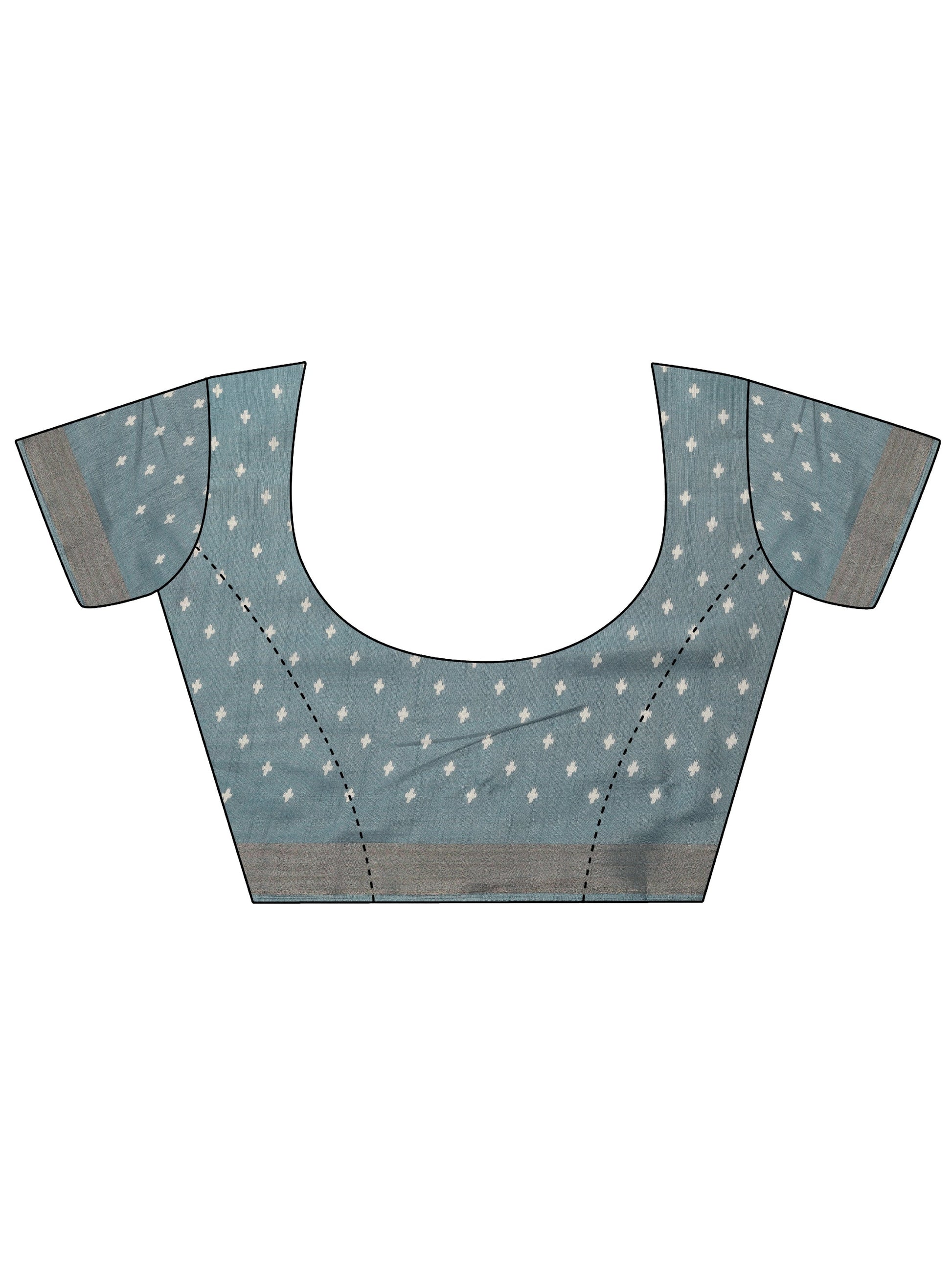 Blue Printed Silk Blend Saree With Unstitched Blouse Piece