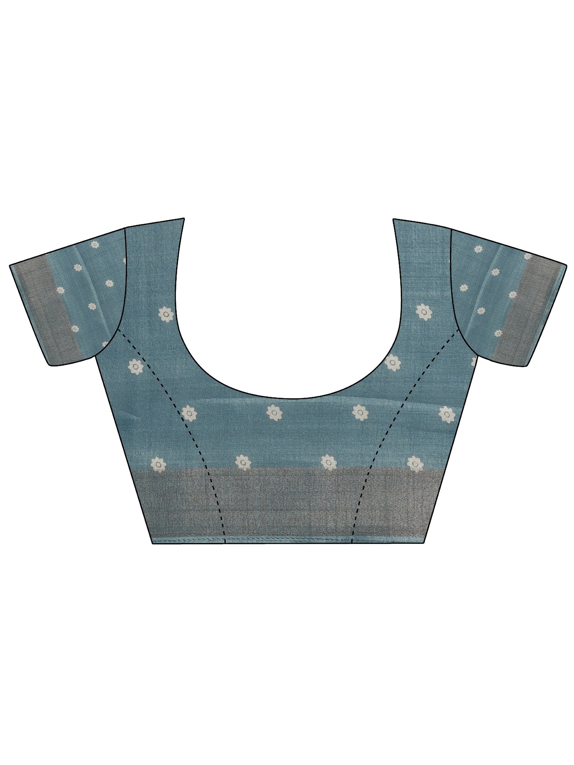 Blue Printed Silk Blend Saree With Unstitched Blouse Piece