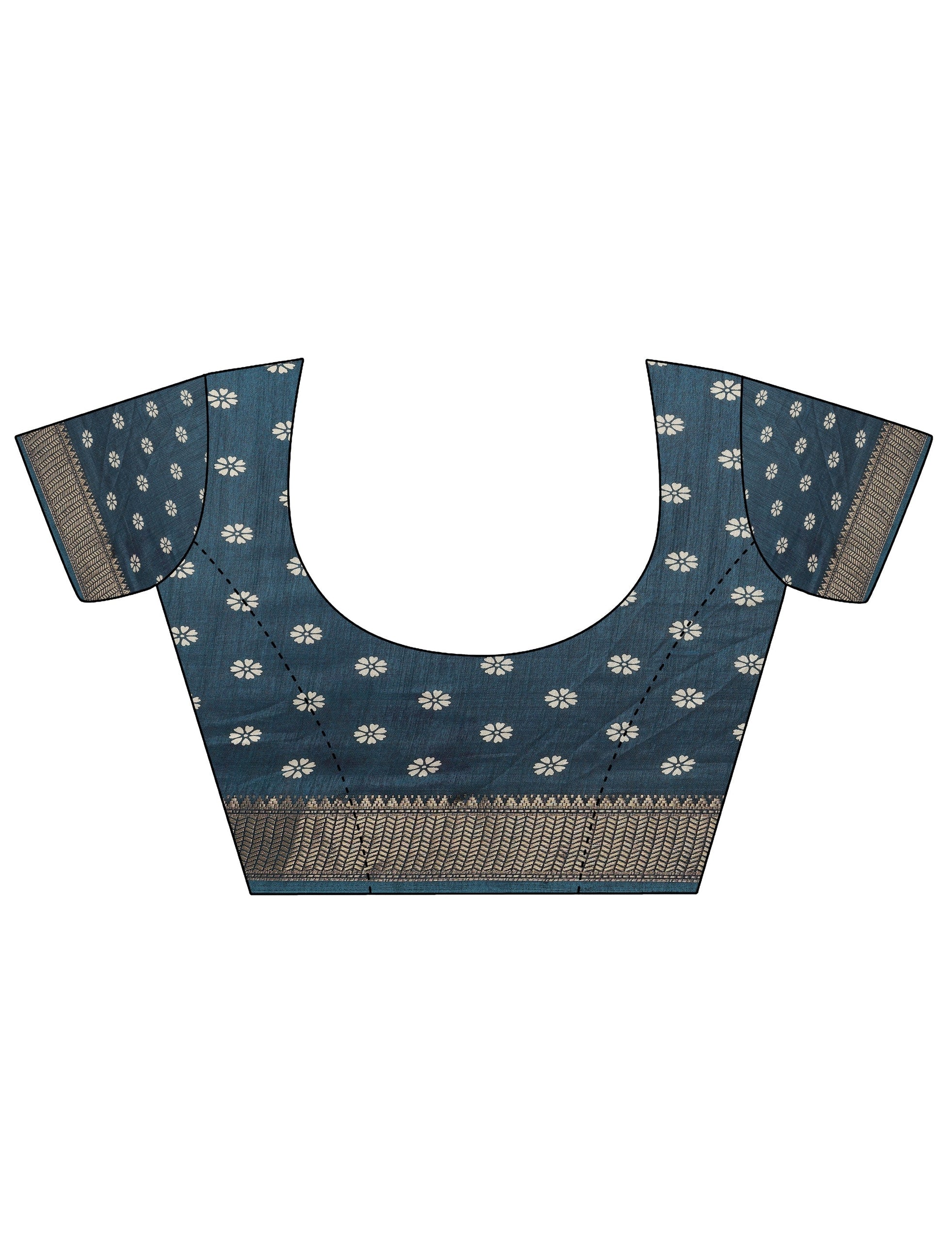 Blue Printed Silk Blend Saree With Unstitched Blouse Piece