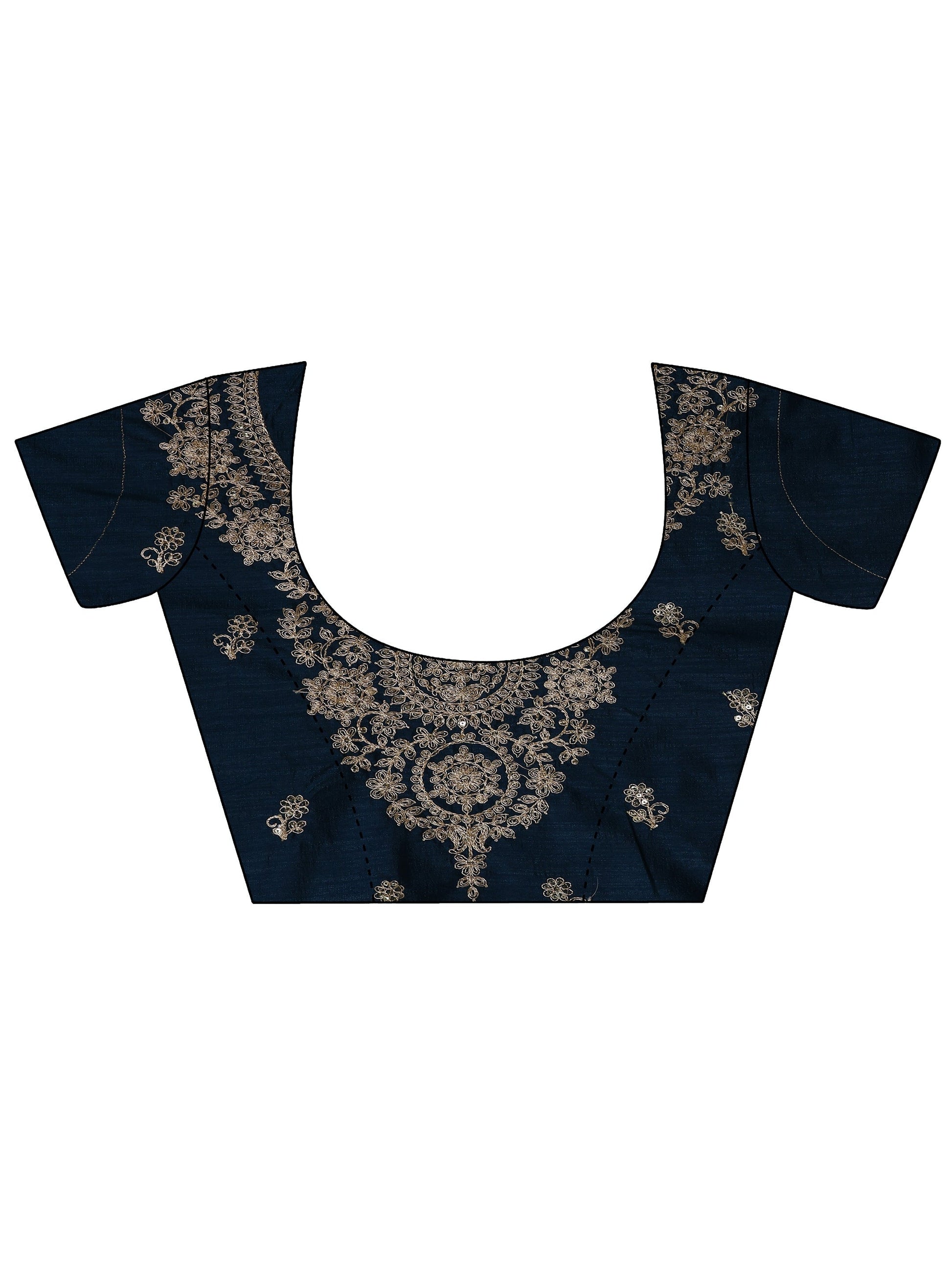 Our Navy Blue Printed Silk Blend Saree Features Captivating Embellishments. Complemented With An Unstitched Blouse Piece. This Charming Saree Is Perfect For Festive Occasions