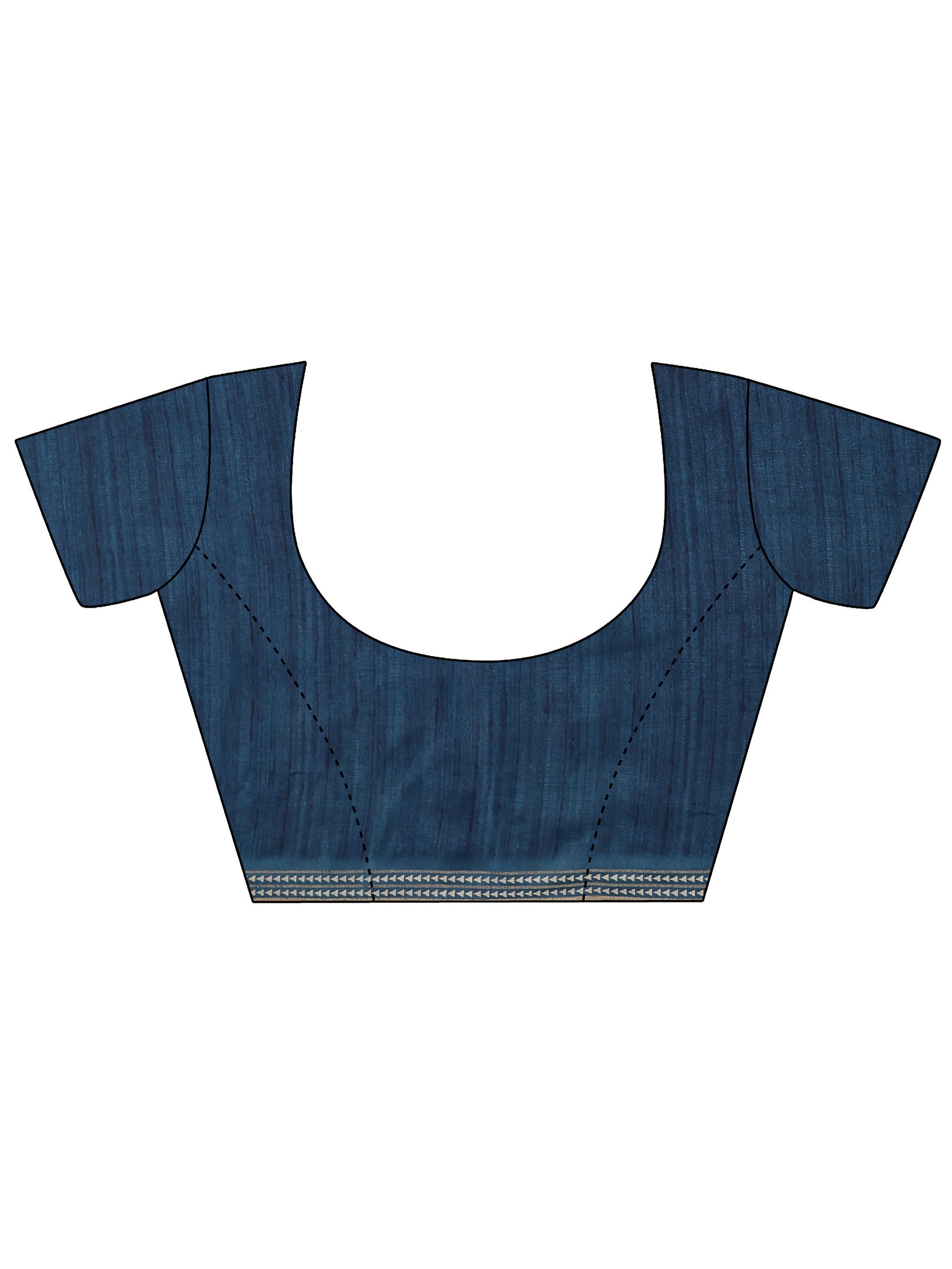Blue Printed Silk Blend Saree With Unstitched Blouse Piece