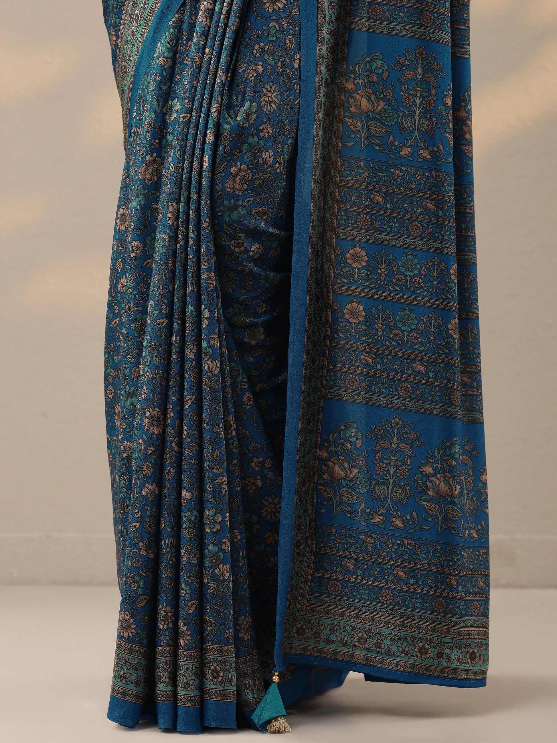 Blue Printed Silk Blend Saree With Unstitched Blouse Piece