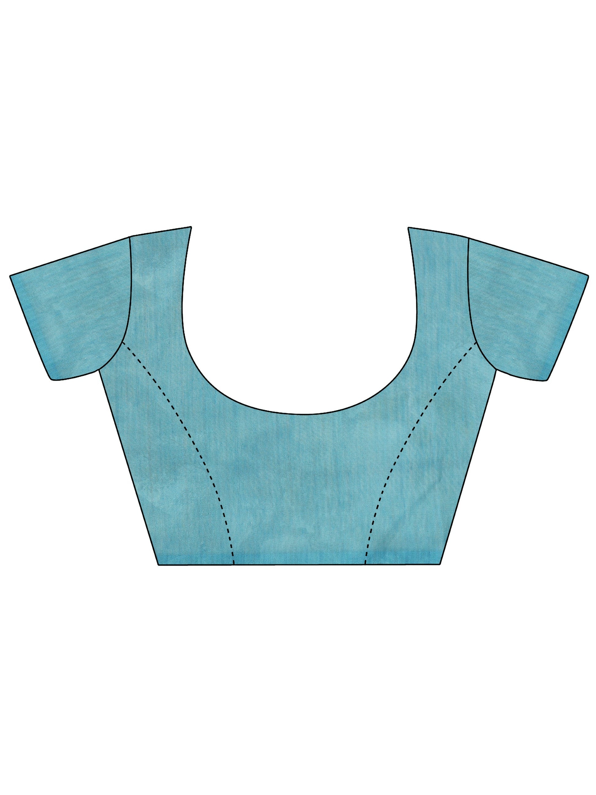 Blue Printed Silk Saree With Unstitched Blouse Piece
