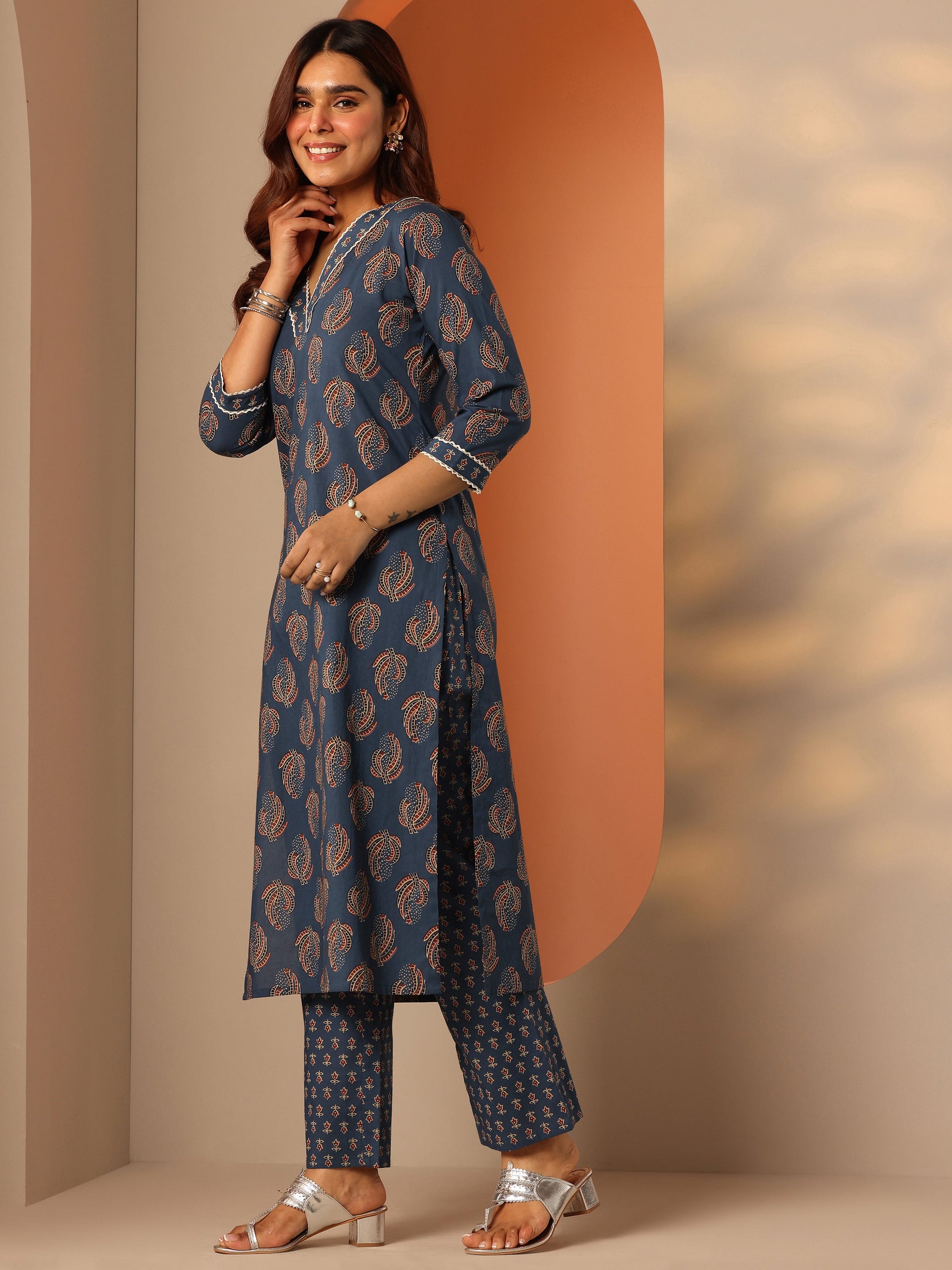 Our 2-piece Navy Blue Cotton Straight-Fit features a V-Neckline, Regular Sleeves, and statement yoke. Complemented with Straight Pants with a Partially Elasticated waistband and 2 pockets. Adorned with Floral Printed, this style is perfect for Casual wear.