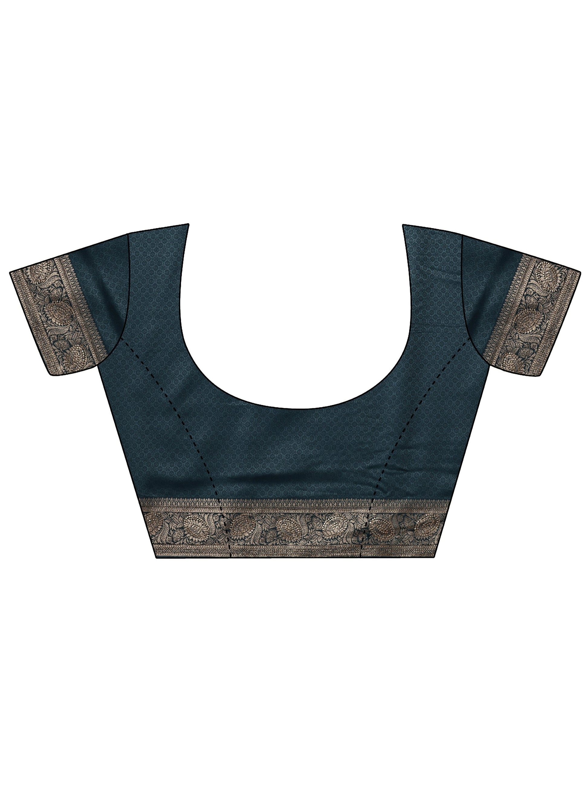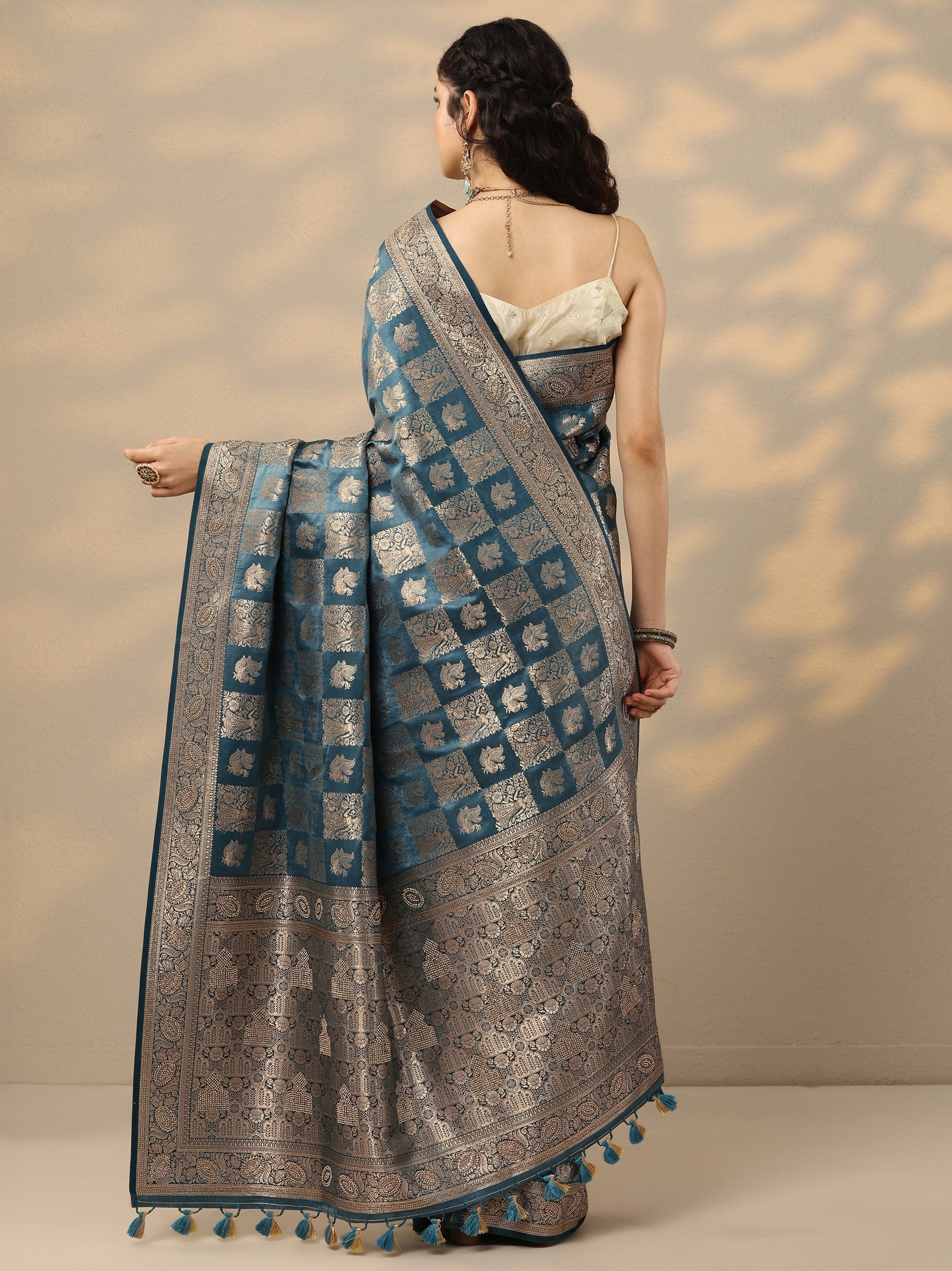 Blue Woven Design Banarasi Silk Blend Saree With Unstitched Blouse Piece