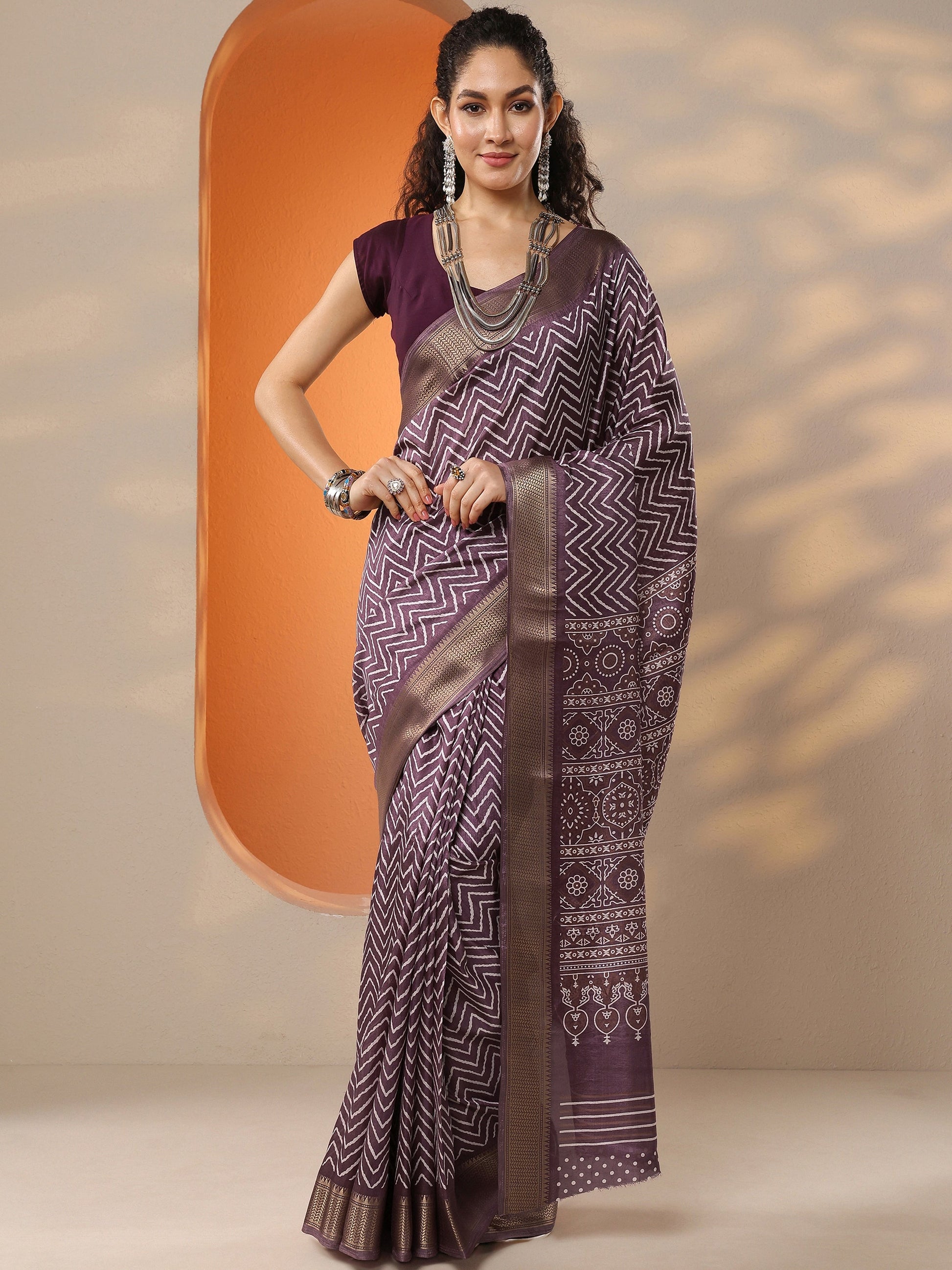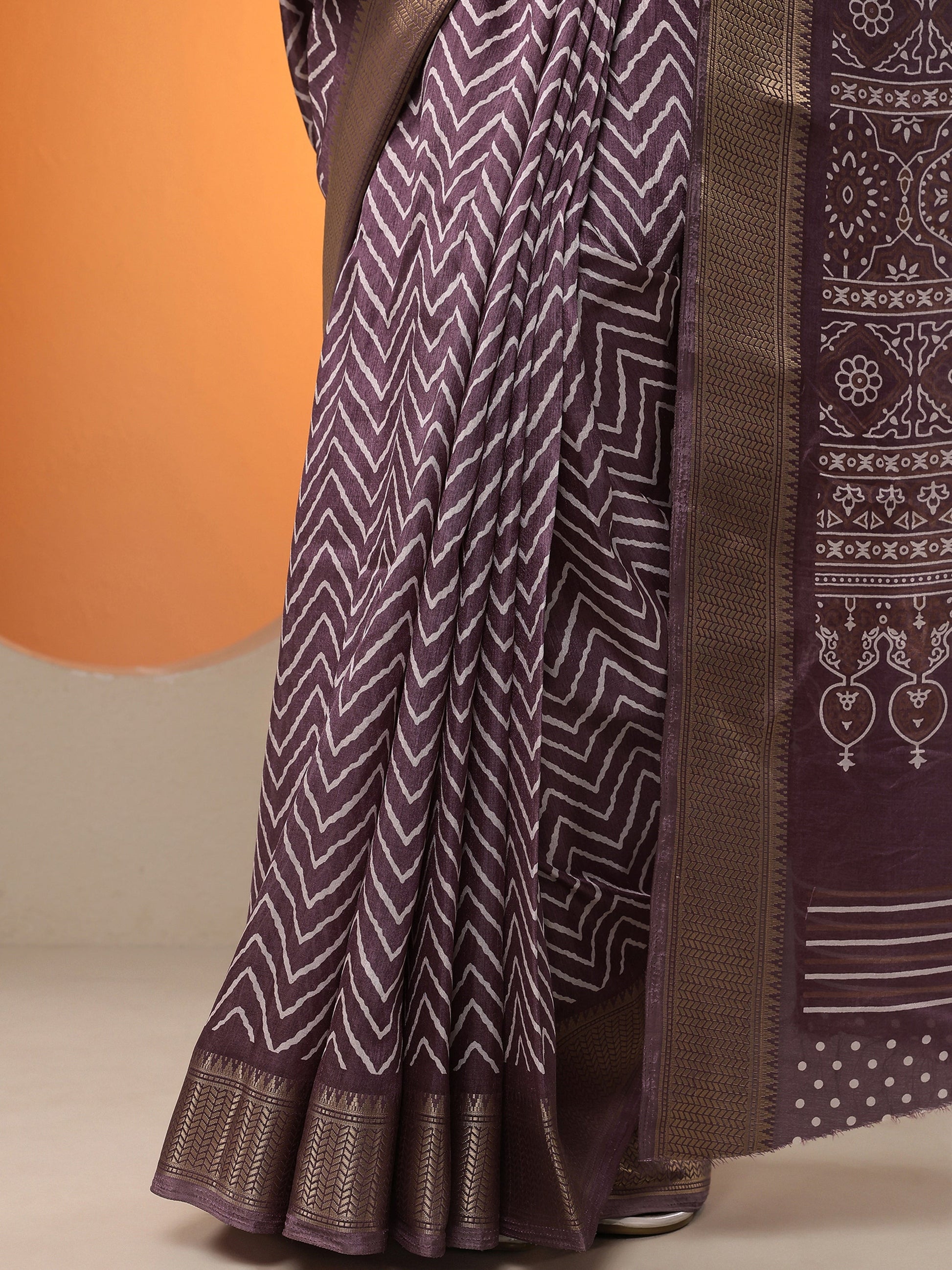 Brown Leheriya Printed Silk Blend Saree With Unstitched Blouse Piece