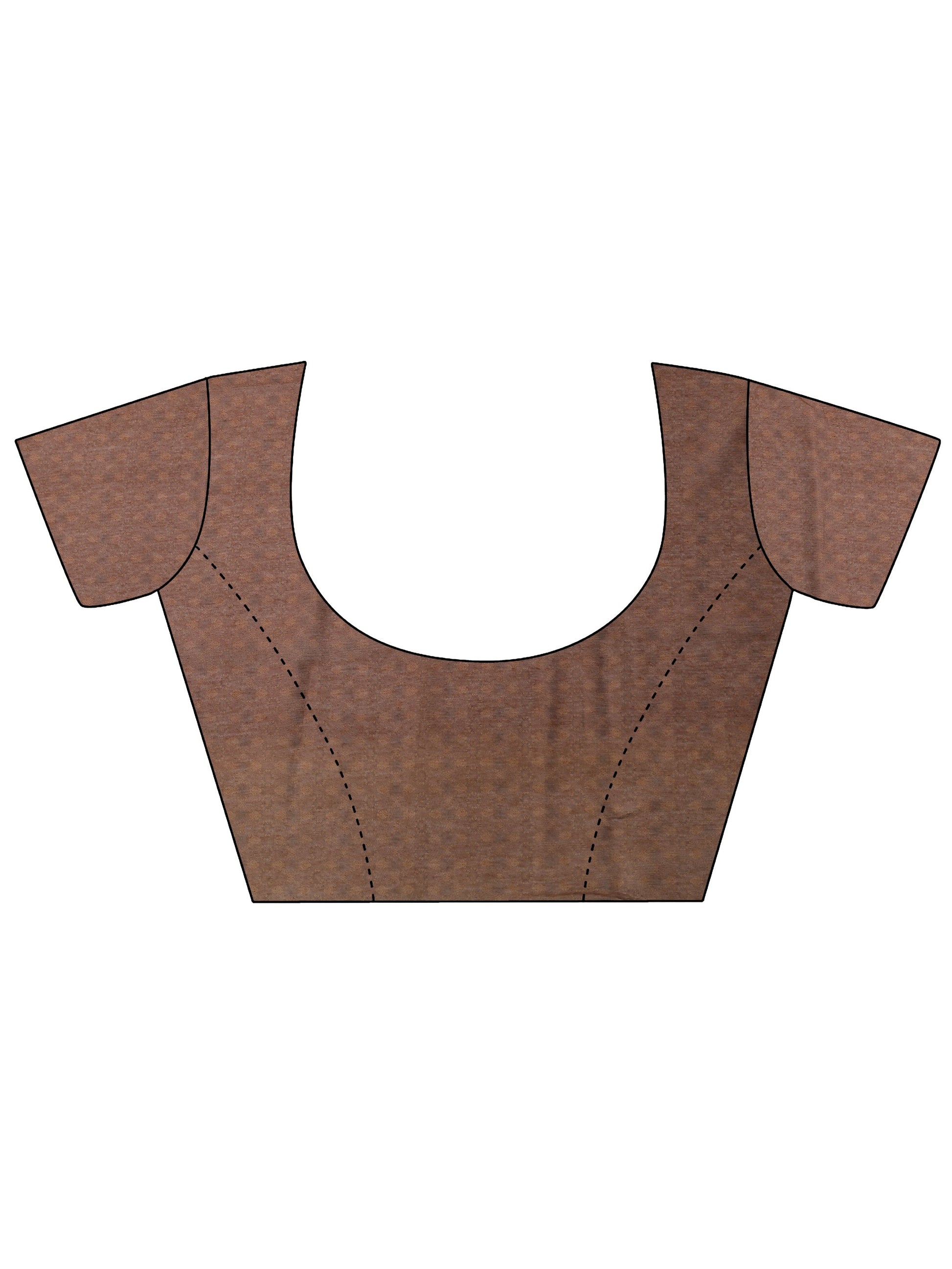 Brown Printed Silk Blend Saree With Unstitched Blouse Piece