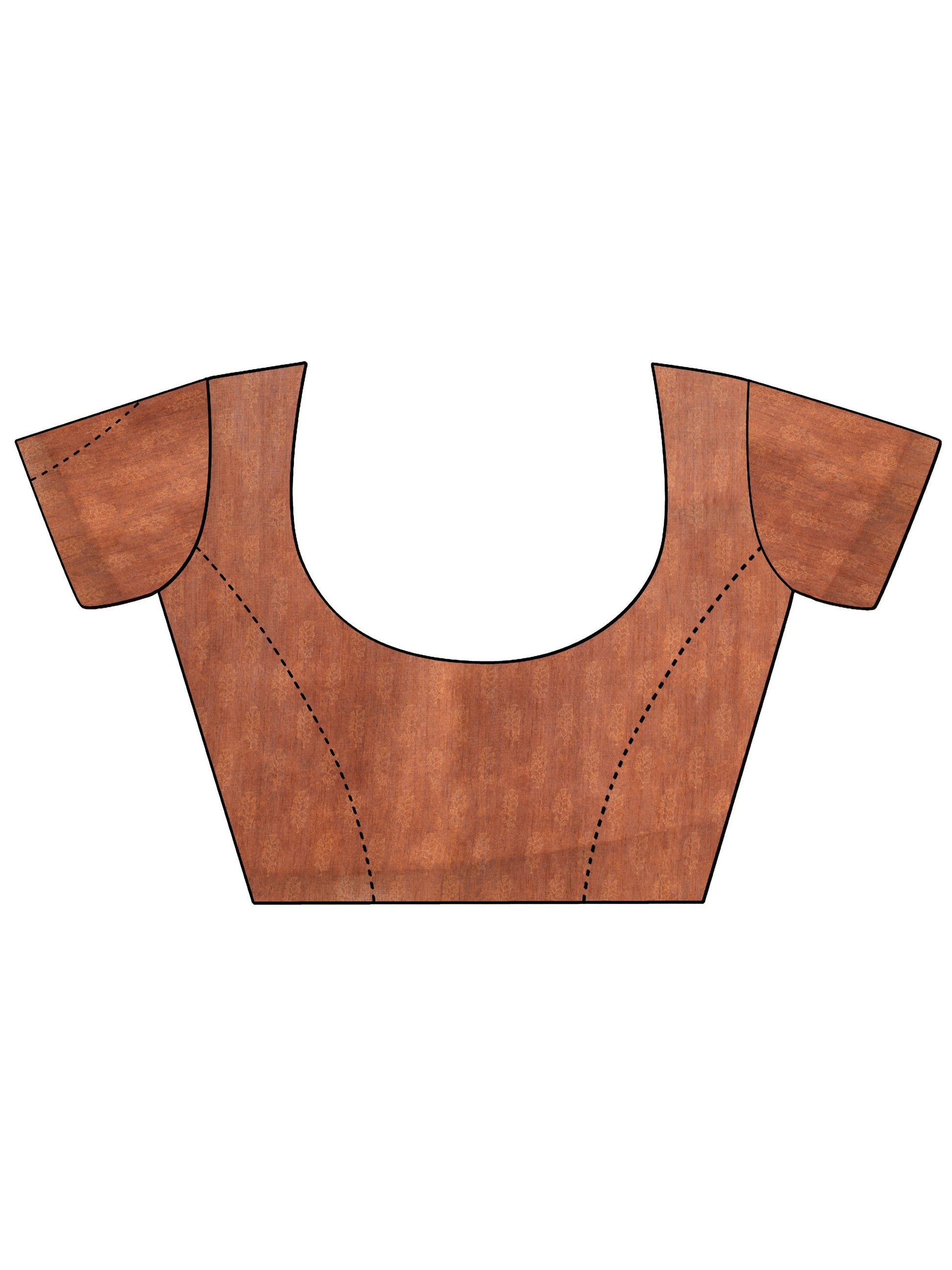 Brown Printed Silk Blend Saree With Unstitched Blouse Piece