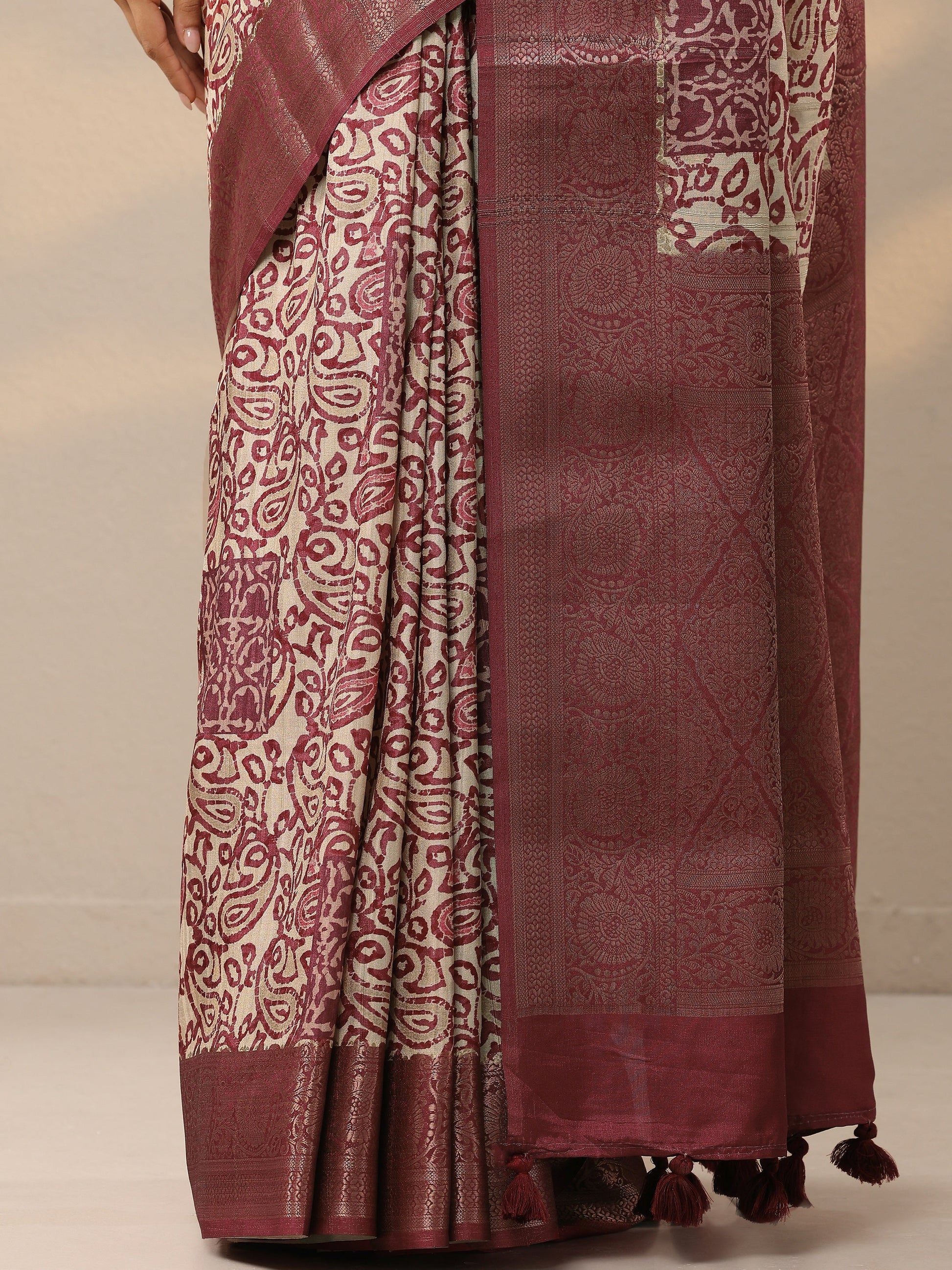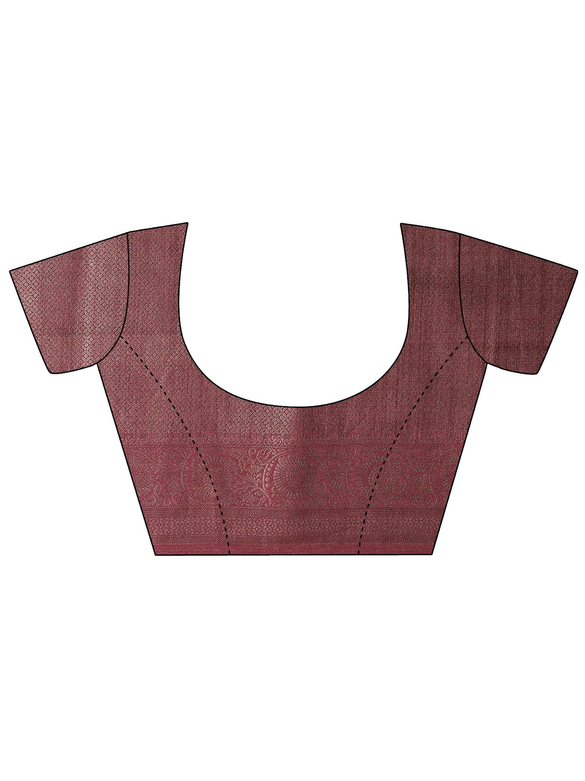 Brown Printed Silk Blend Saree With Unstitched Blouse Piece