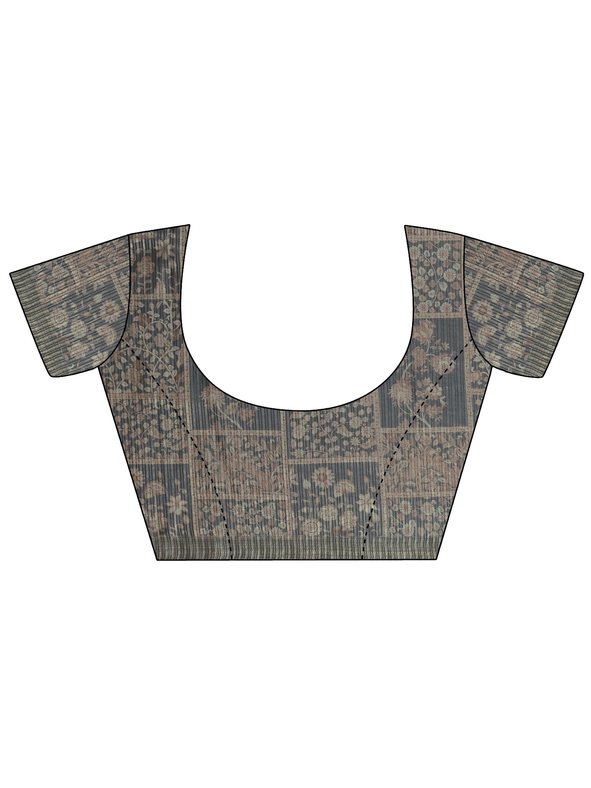 Brown Printed Silk Blend Sarees With Unstitched Blouse Piece