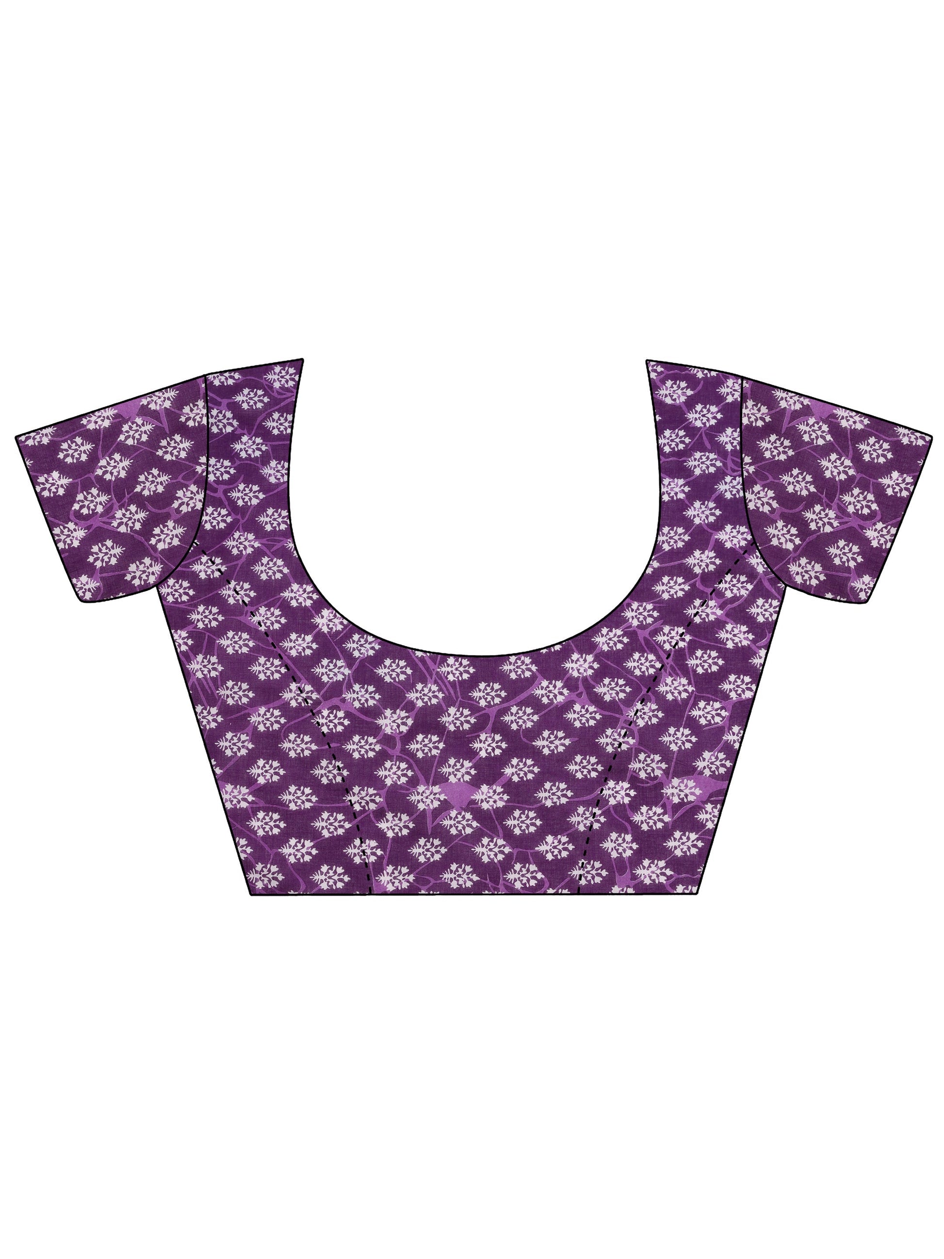 Our Purple Printed Cotton Saree Features Captivating Ethnic Motif Printed Design. Complemented With A Unstitched Blouse. This Charming Saree Is Perfect For Casual Wear