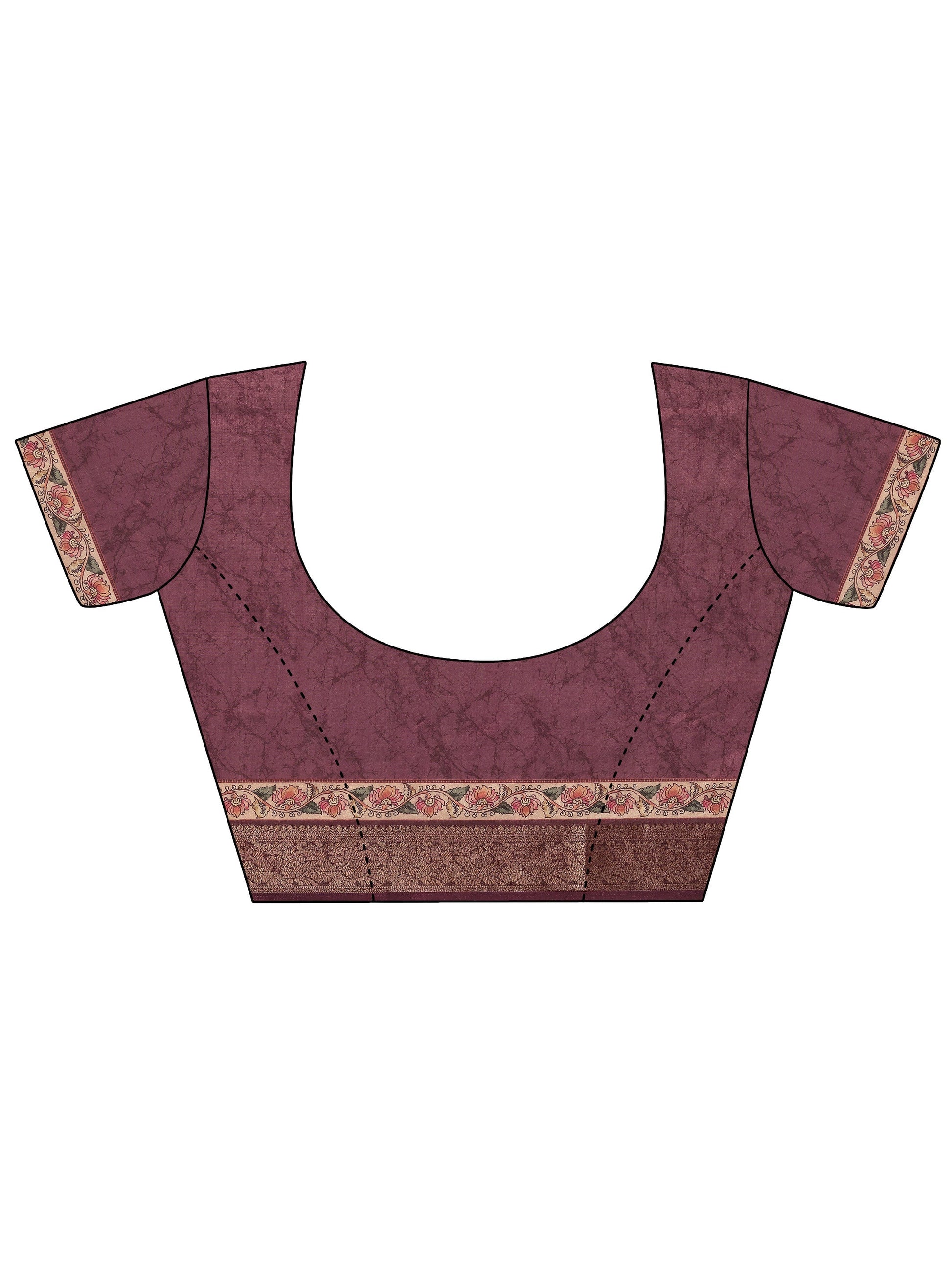 Burgundy Printed Silk Blend Saree With Unstitched Blouse Piece