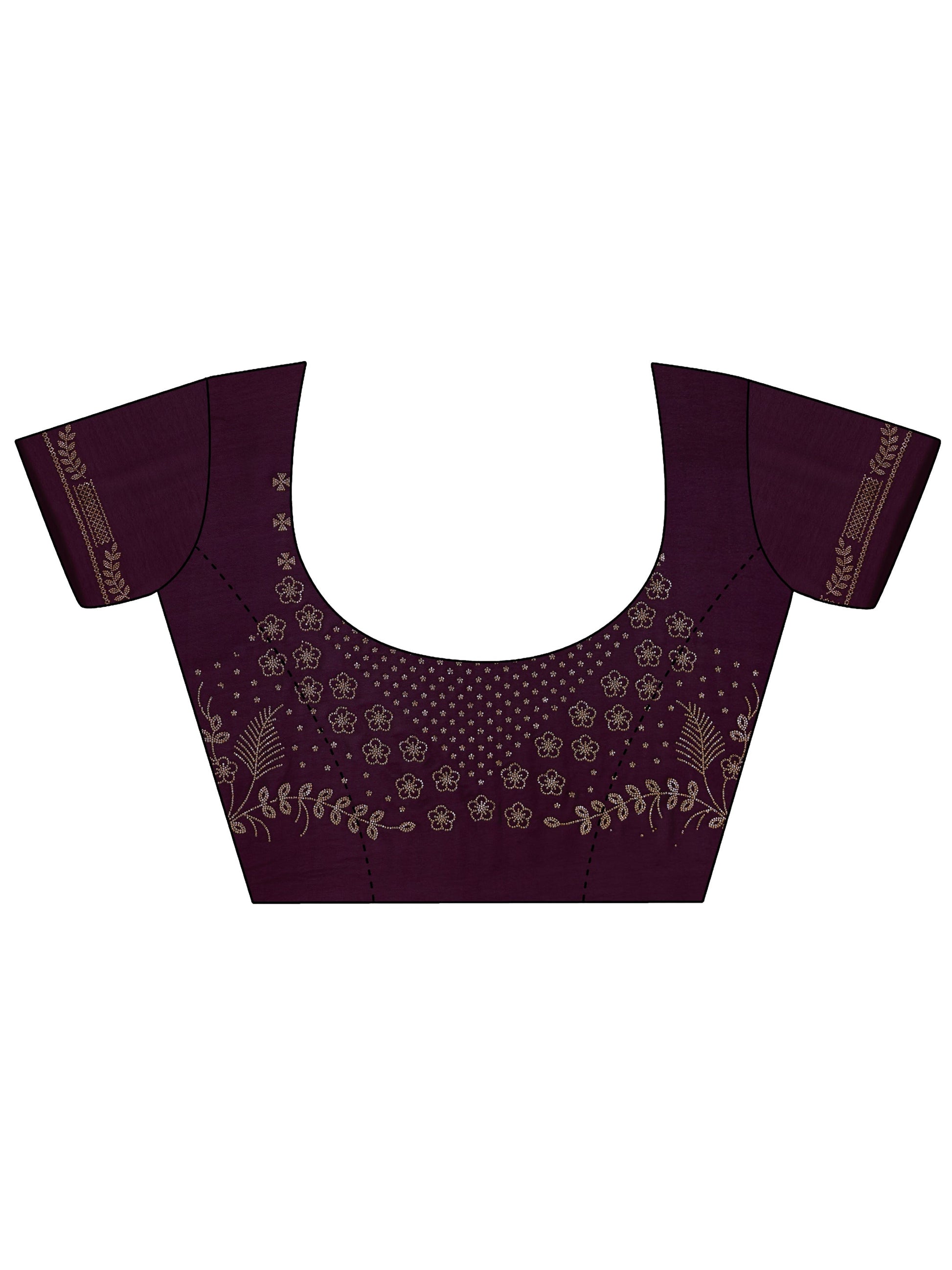 Our purple satin saree features captivating solid design. Complemented with a unstitched blouse piece. This charming saree is perfect for dark festive occasions.