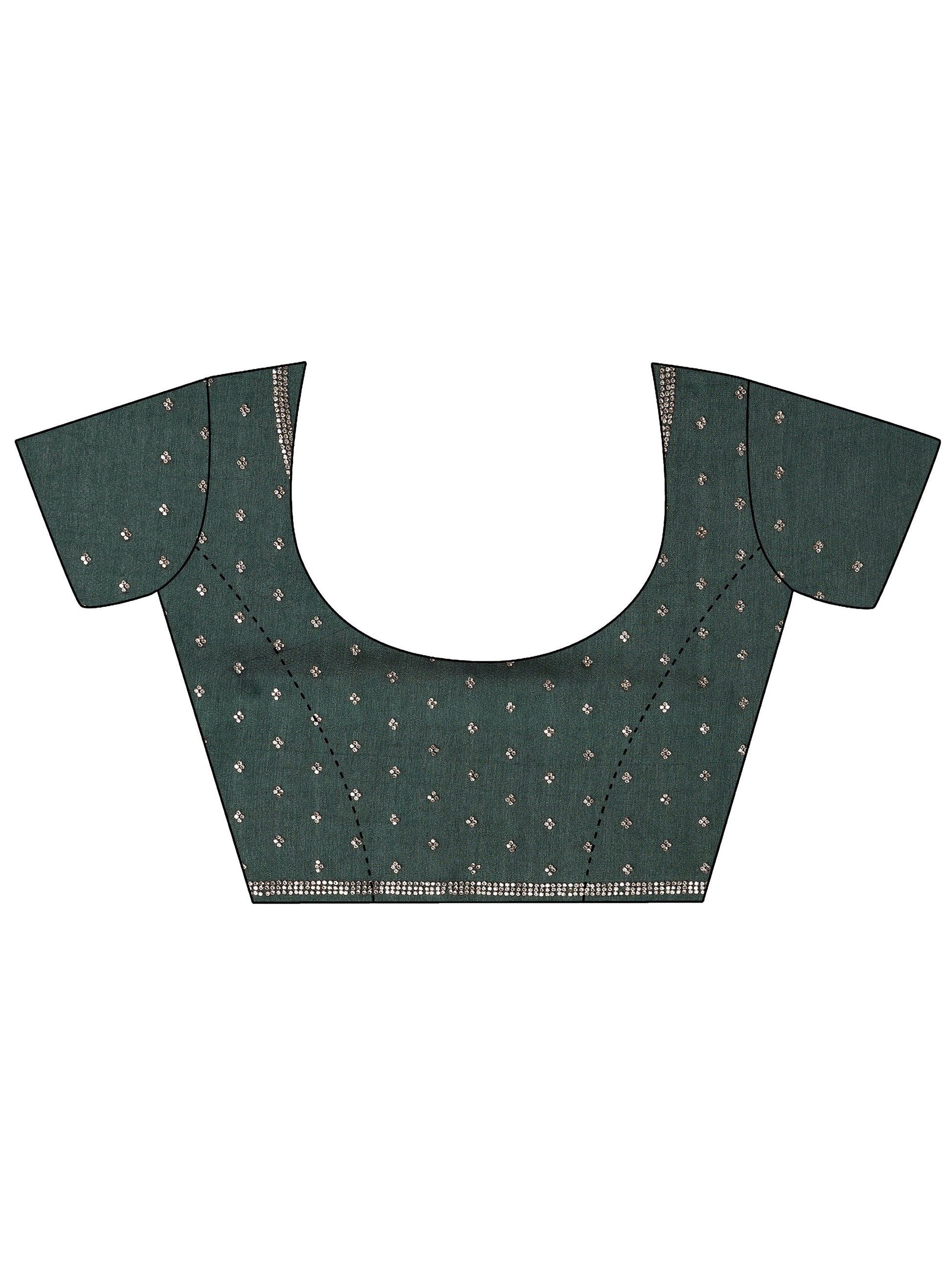 Our purple silk blend saree features captivating embellishments. Complemented with a stitched blouse. This charming saree is perfect for festive occasions.