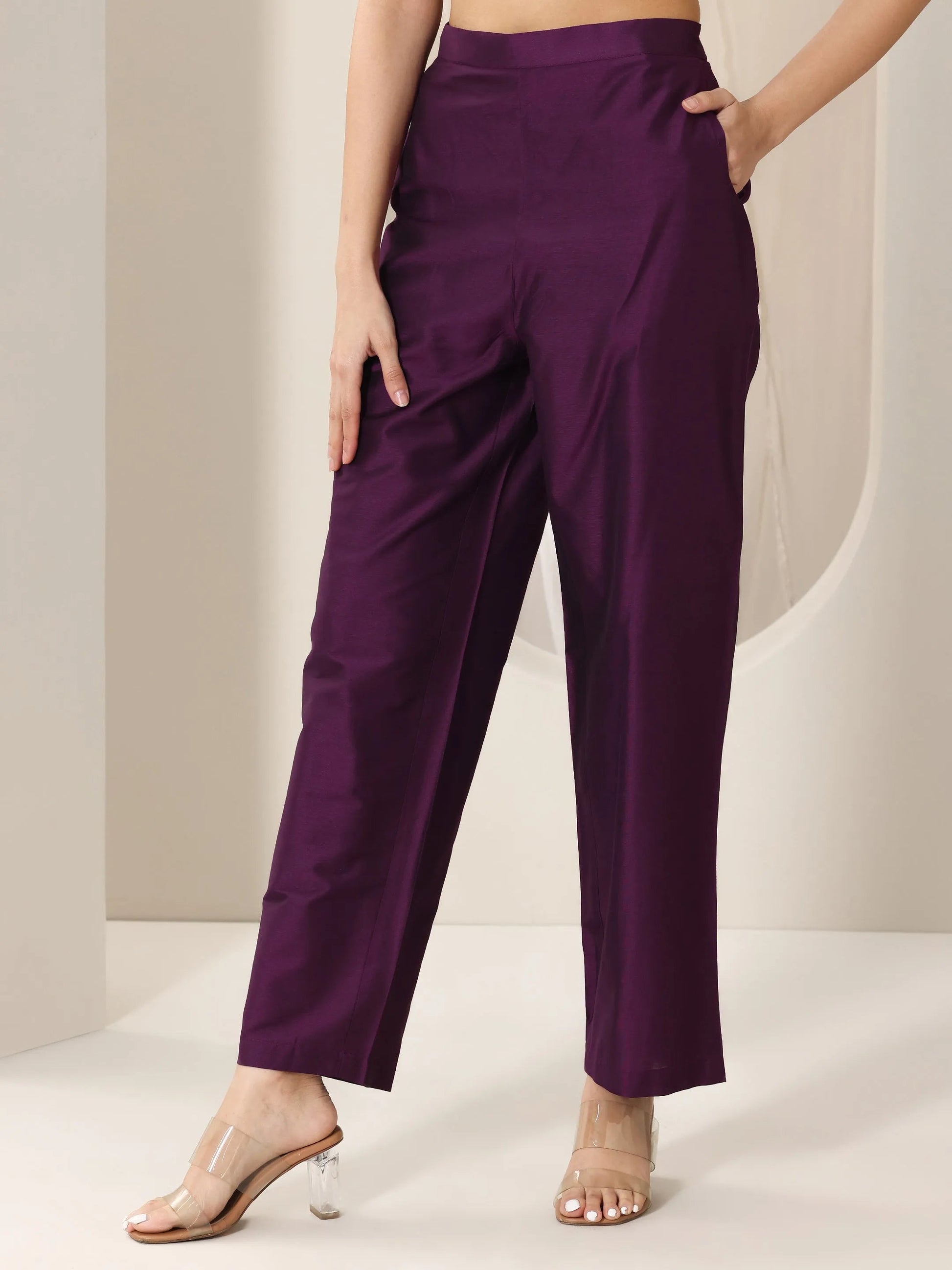 Burgundy Yoke Design Silk Blend Straight Suit Set With Dupatta