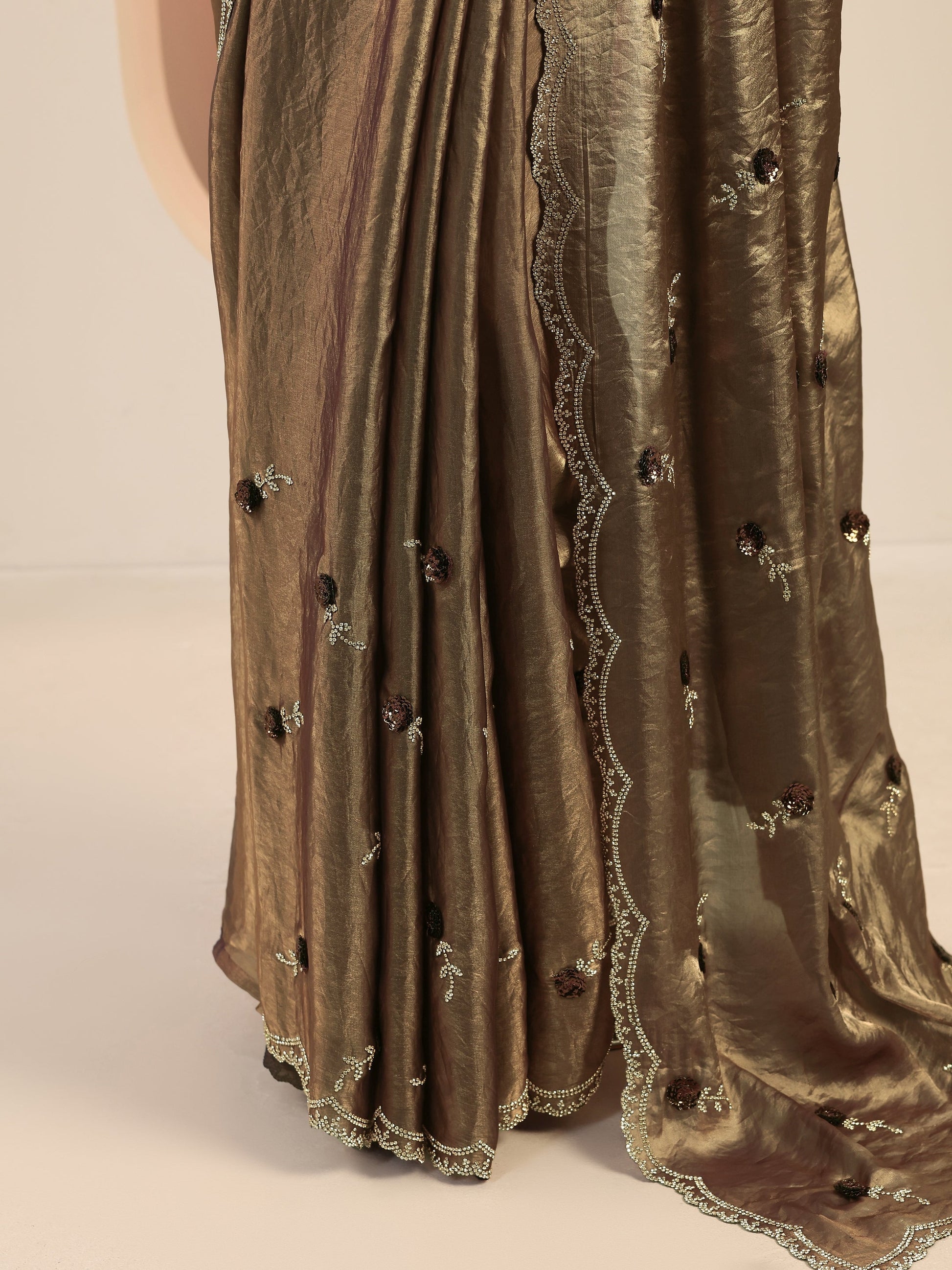 Copper Embellishments Satin Saree With Unstitched Blouse Piece