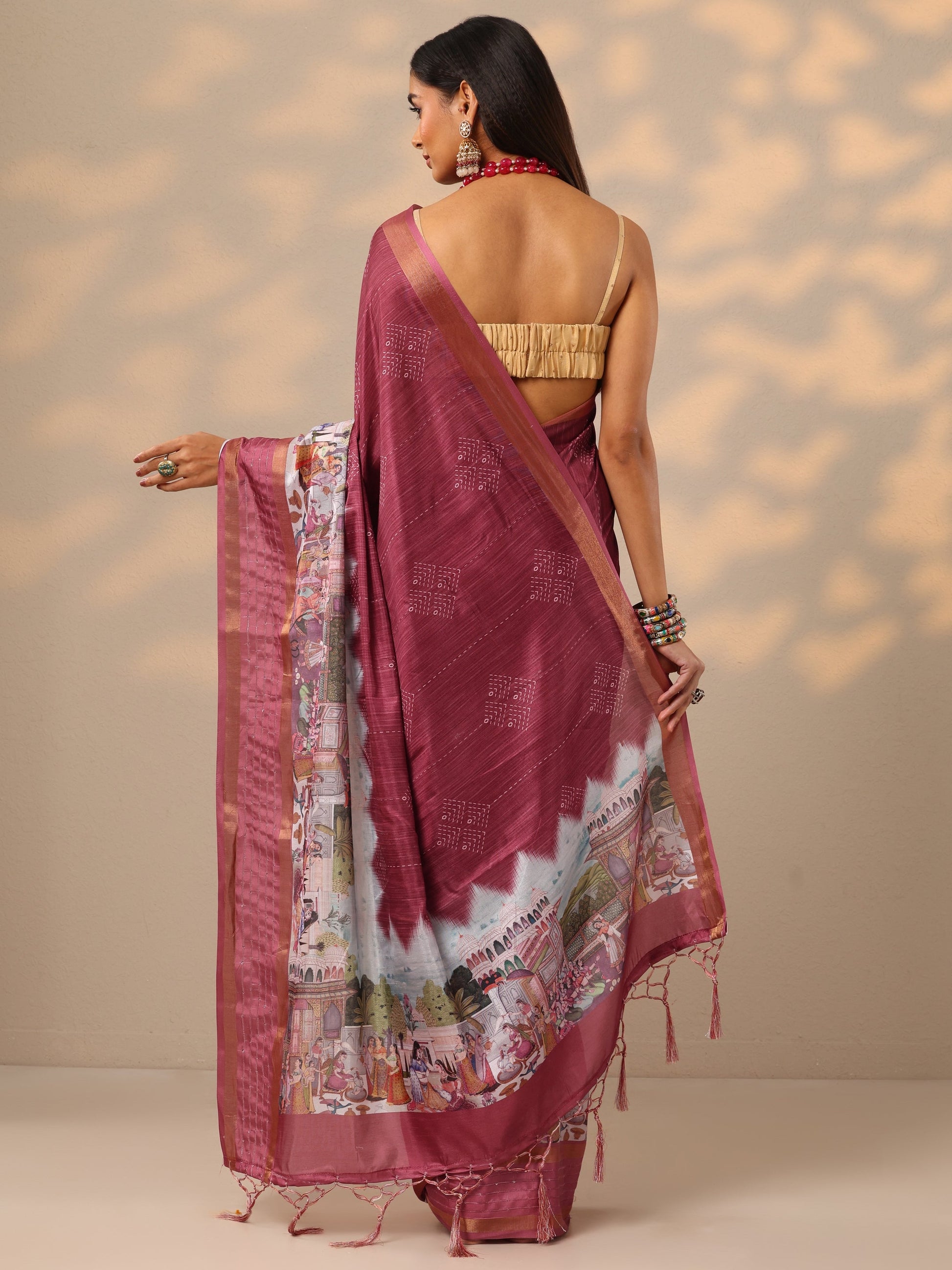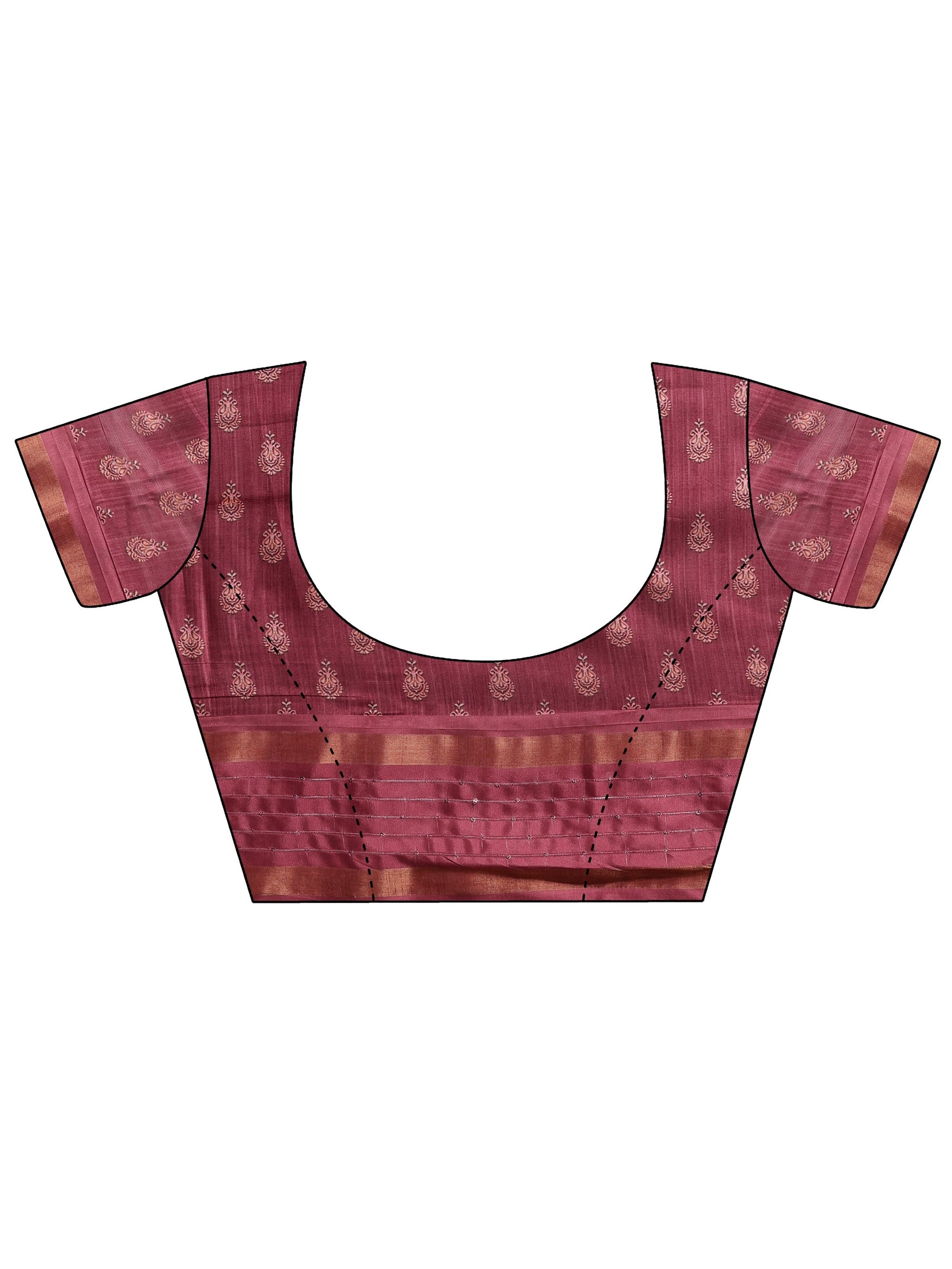 Coral Printed Silk blend Saree With Unstitched Blouse Piece