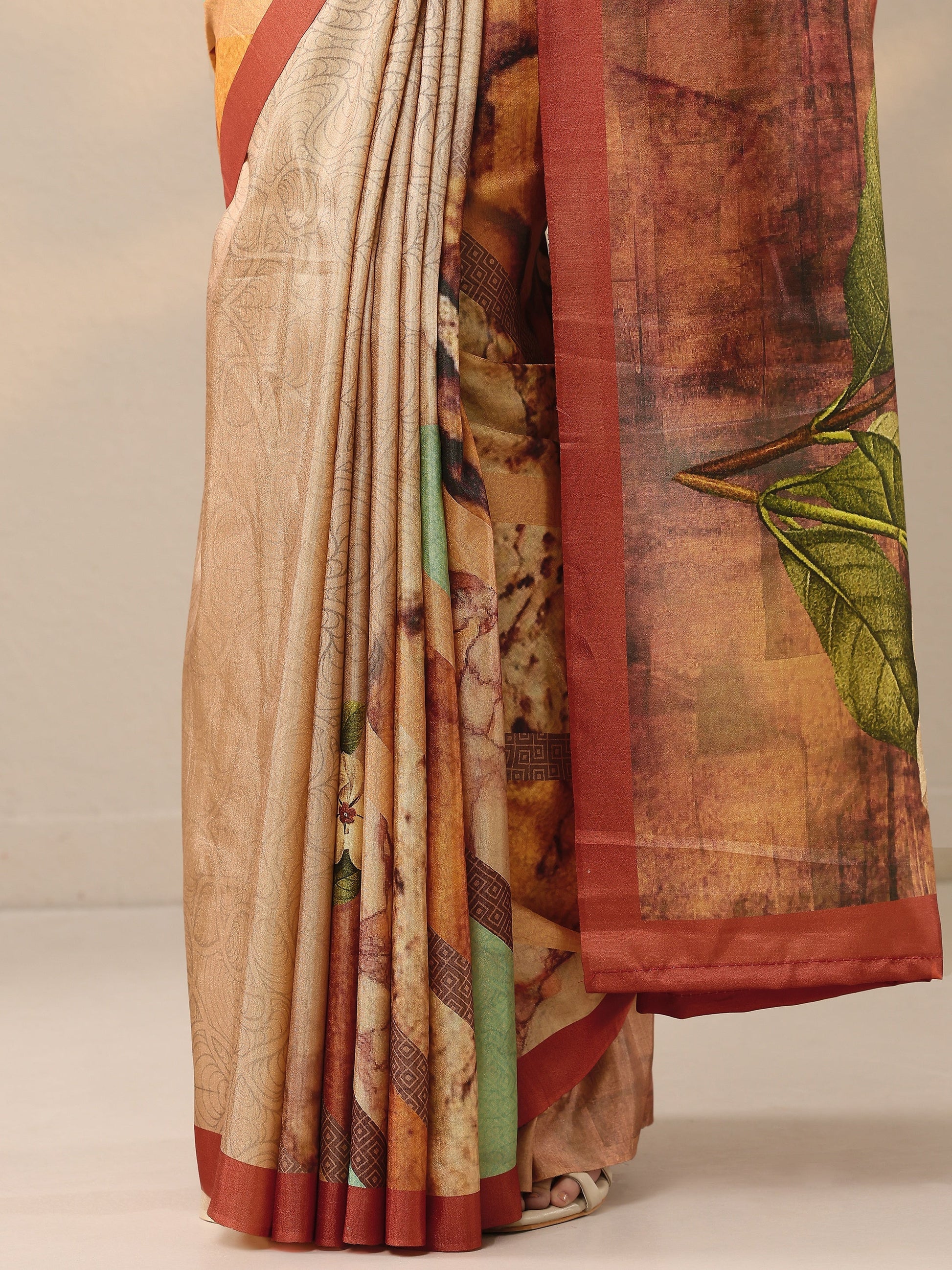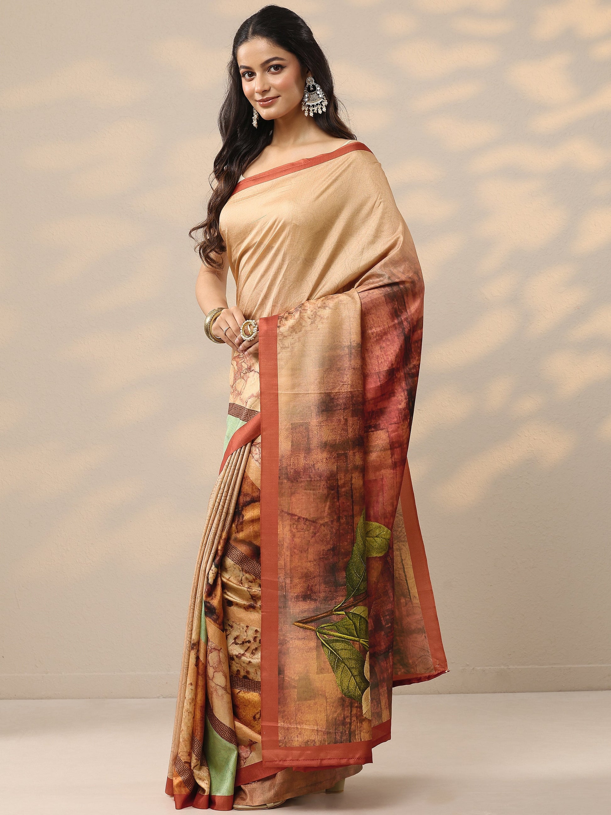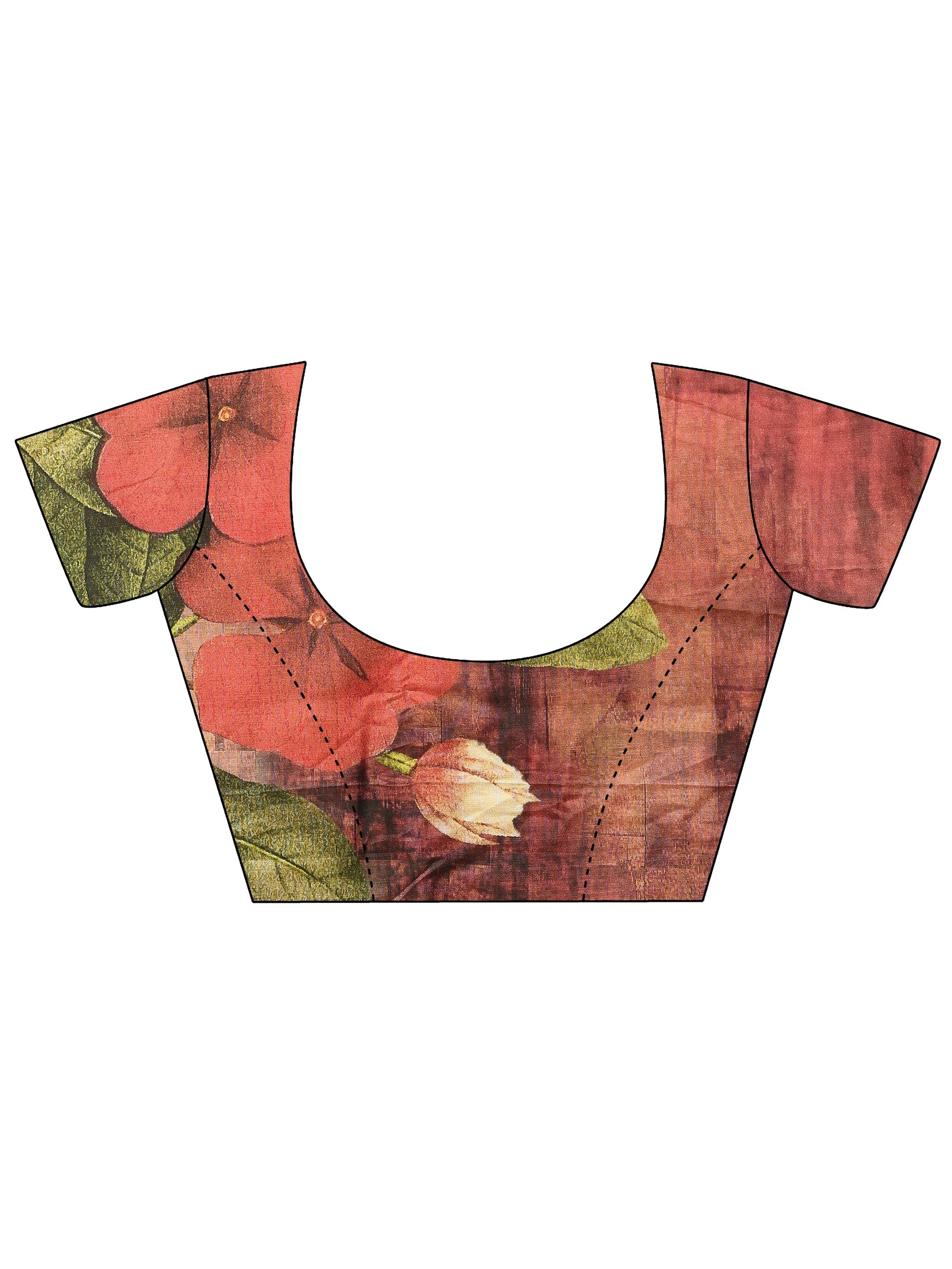 Coral Printed Silk Blend Saree With Unstitched Blouse Piece