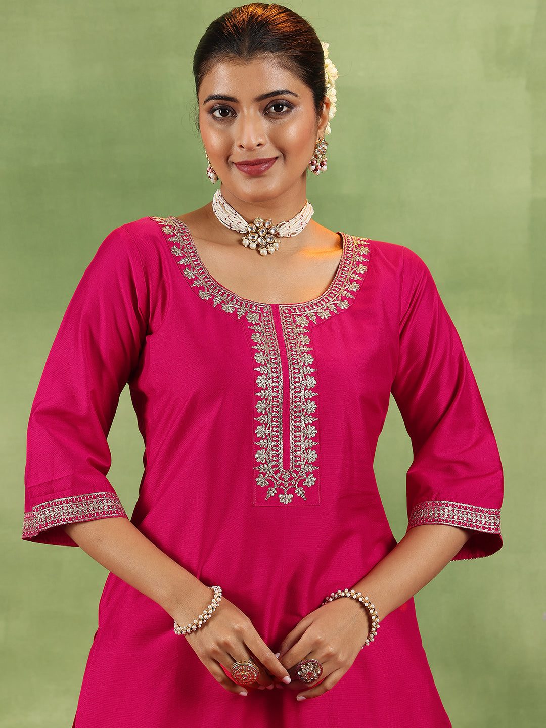 Coral Yoke Design Silk Blend Straight Suit With Dupatta