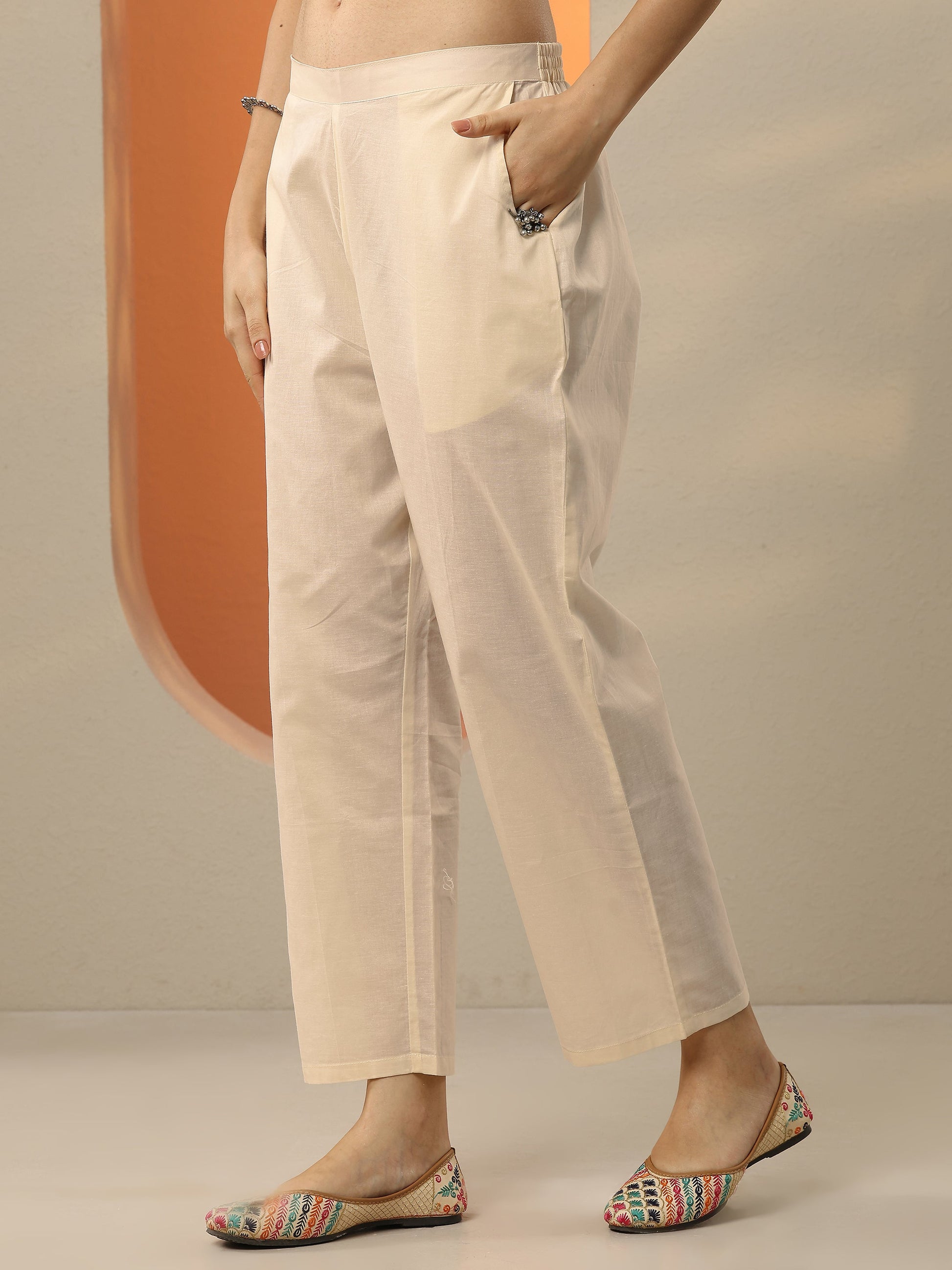 Cream Embroidered Silk Blend Straight Suit Set With Dupatta
