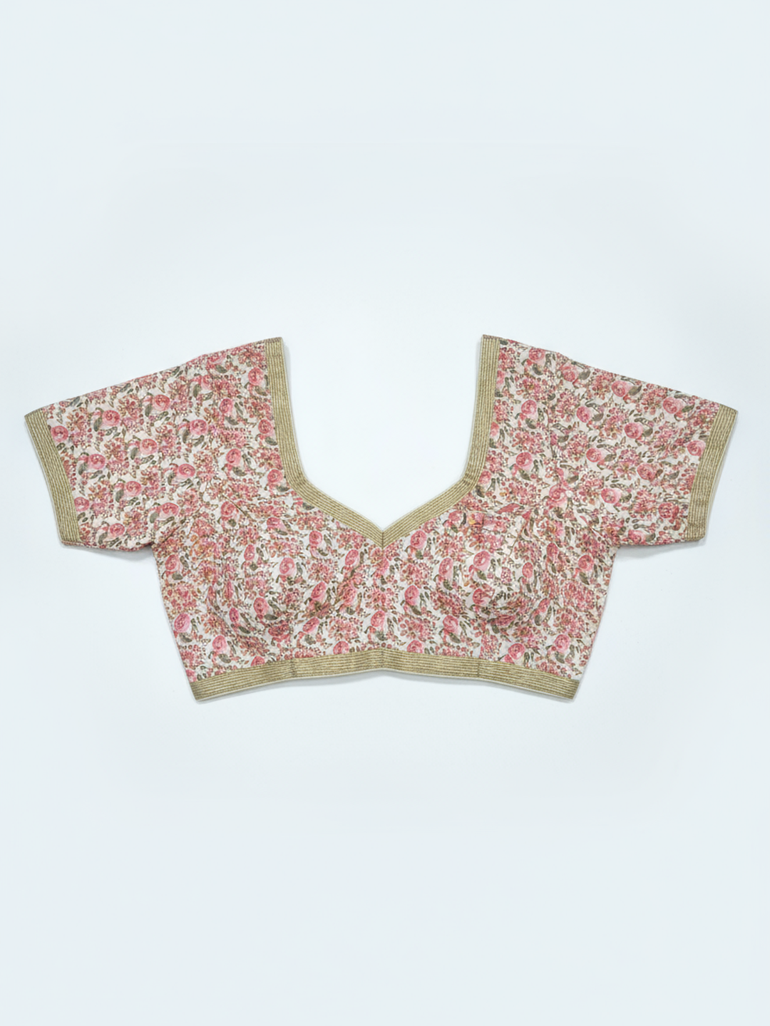 Cream Printed Pure Georgette Saree With Unstitched Blouse Piece