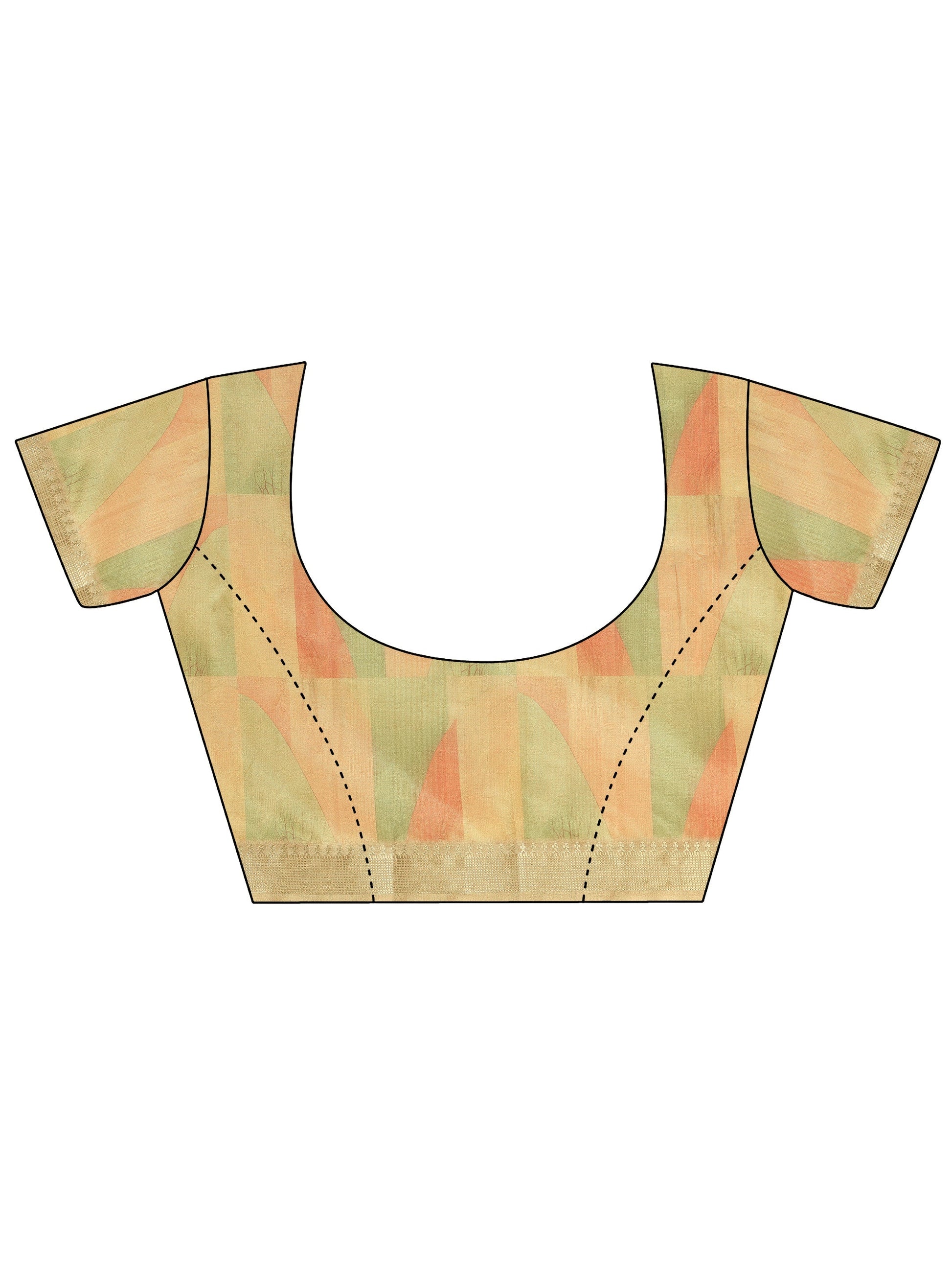 Gold Printed Silk Blend Saree With Unstitched Blouse Piece
