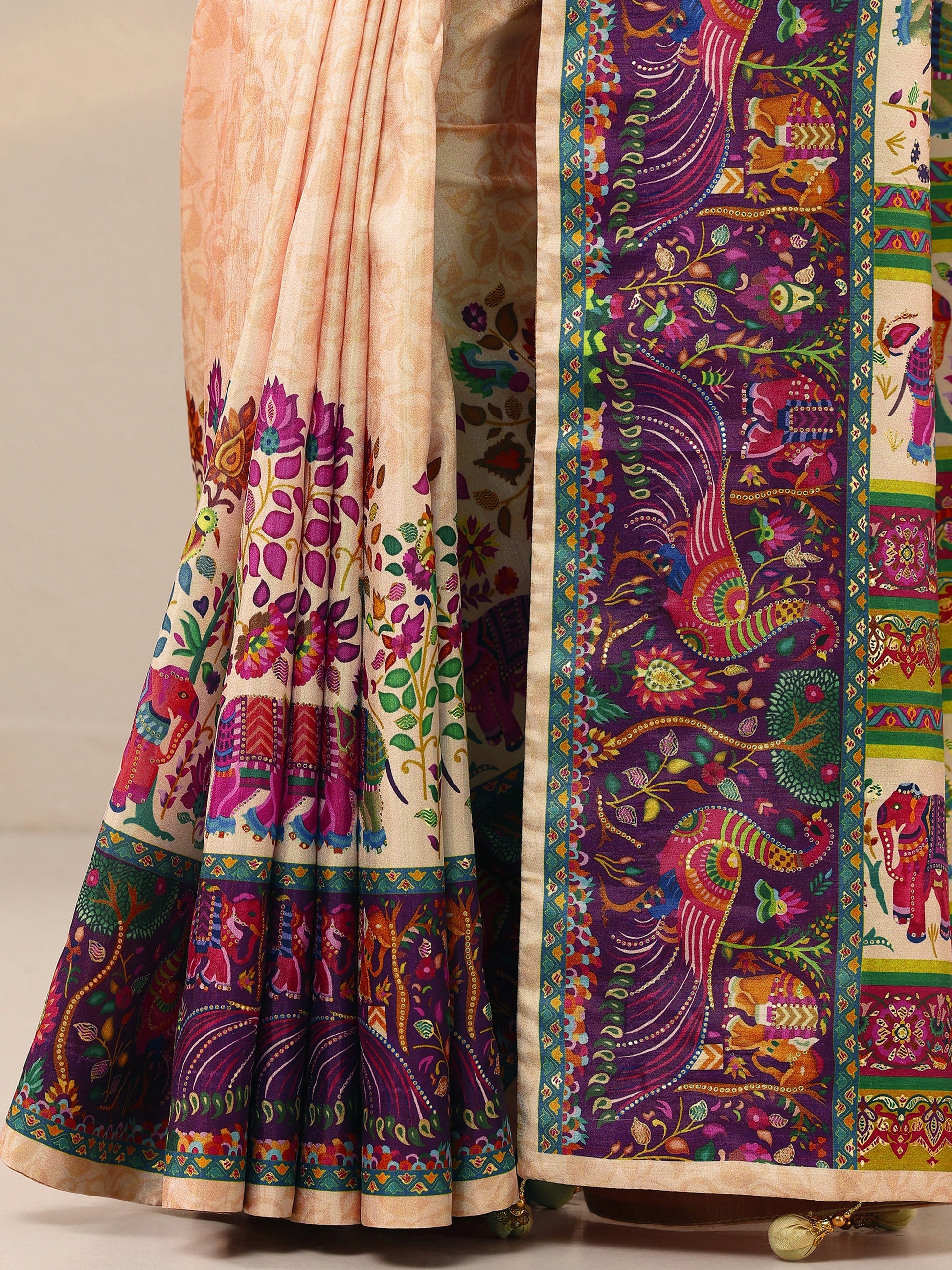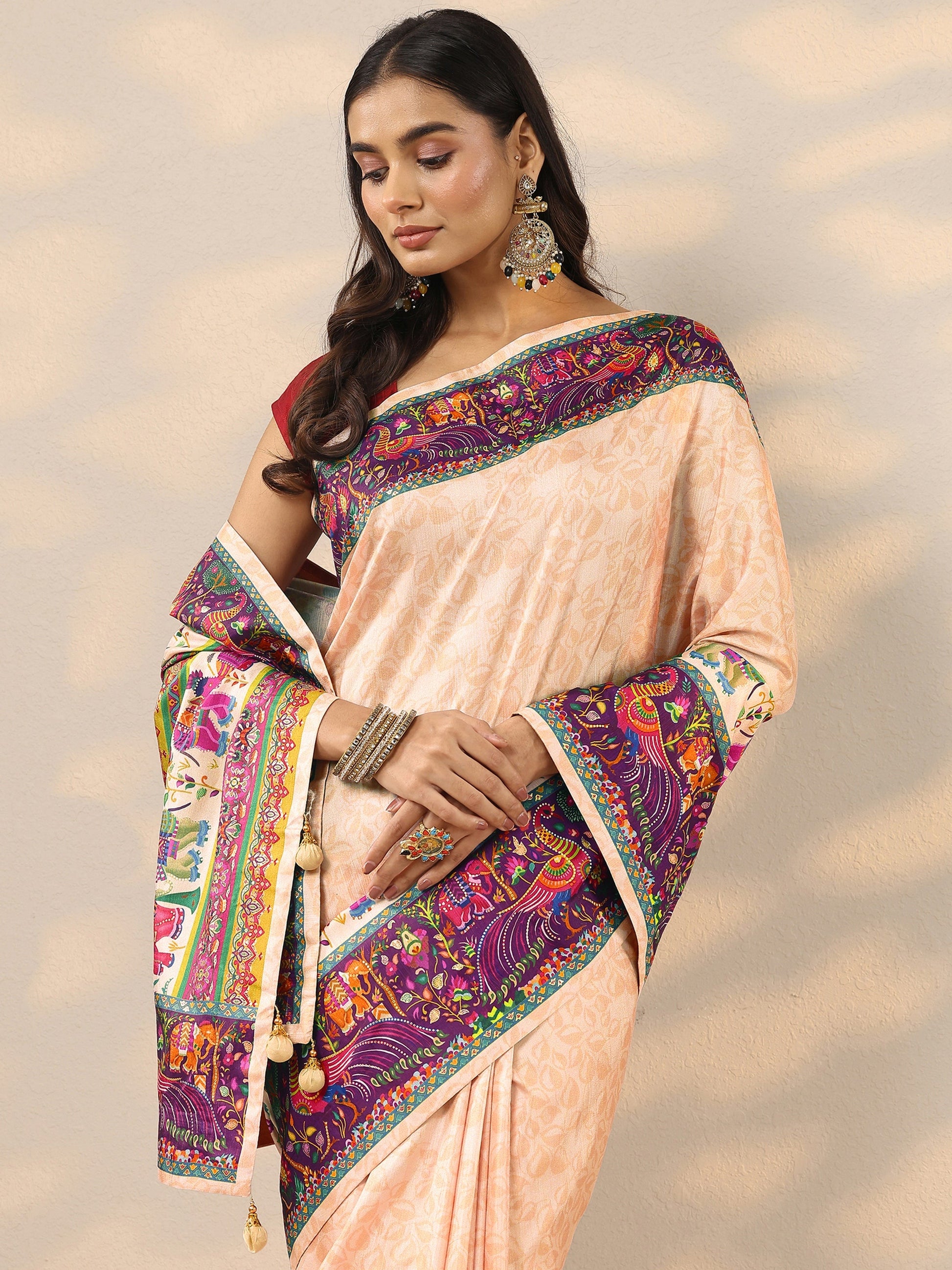 Gold Printed Silk Blend Saree With Unstitched Blouse Piece