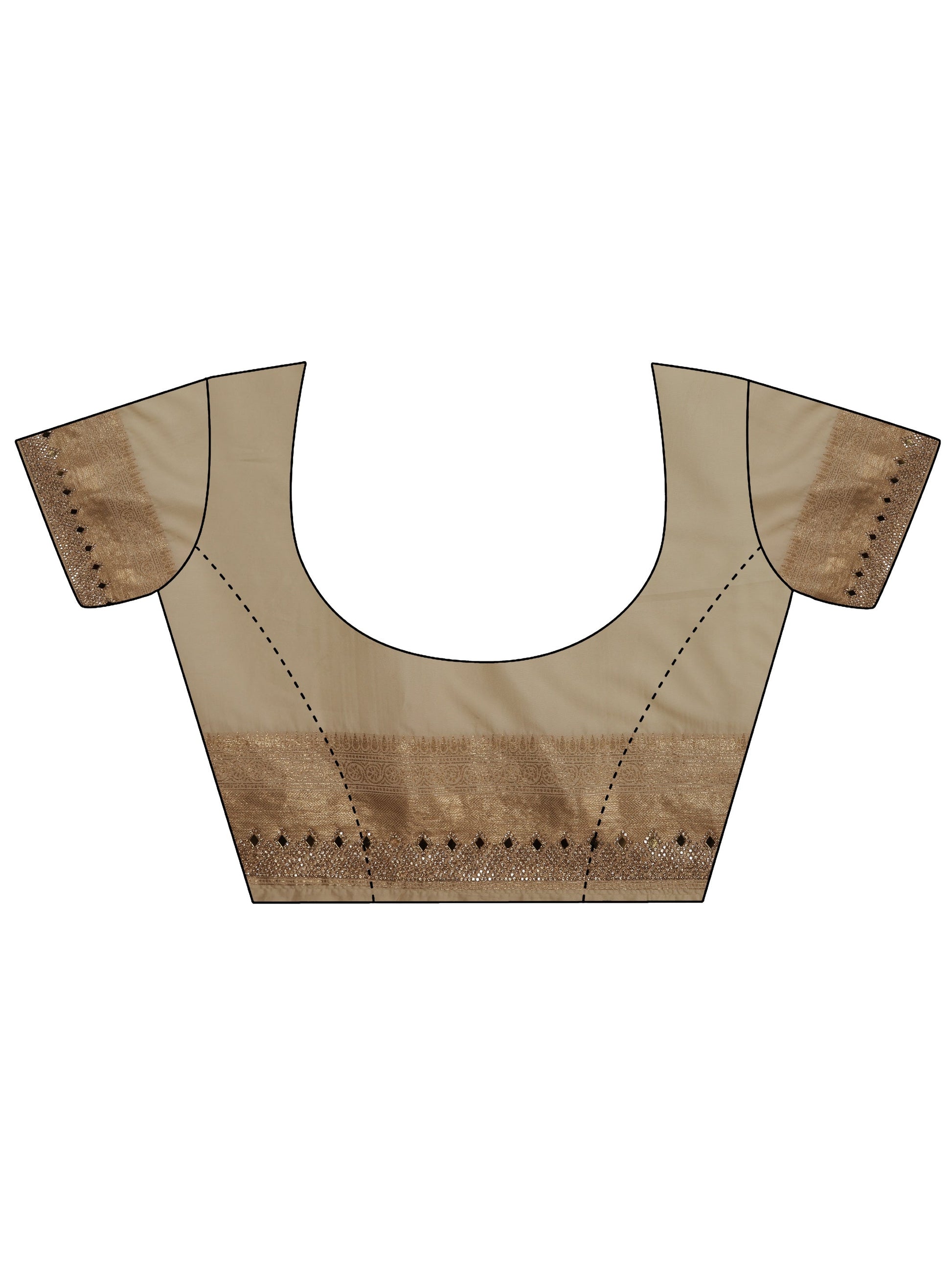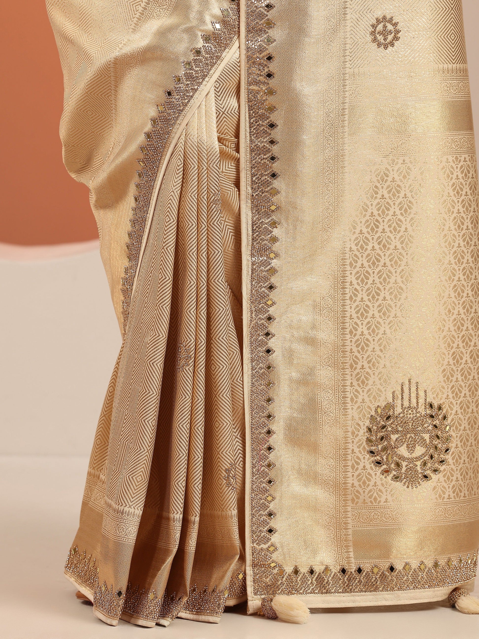 Gold Silk Blend Saree With Unstitched Blouse Piece