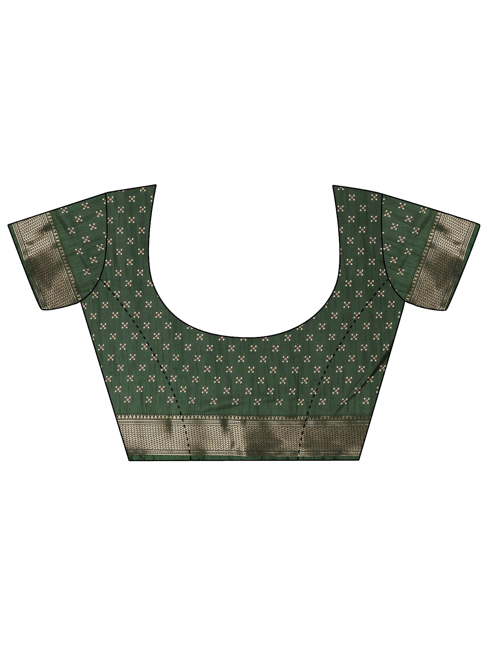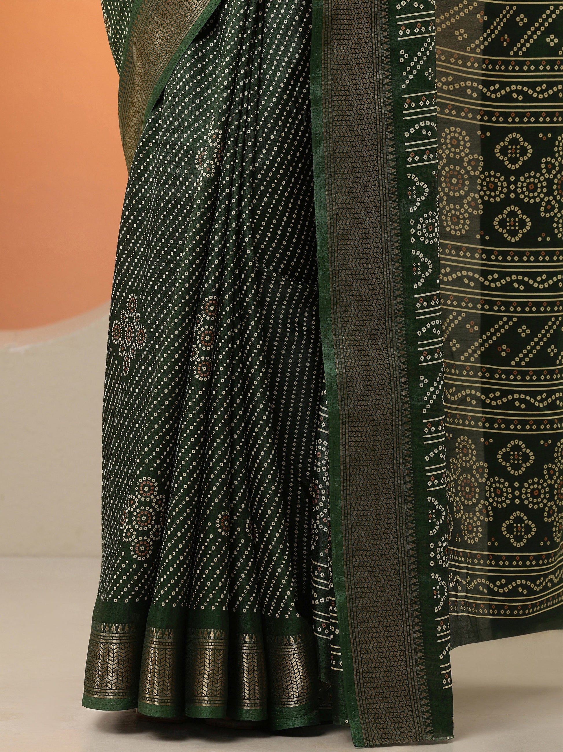Green Bandhani Printed Silk Blend Saree With Unstitched Blouse Piece