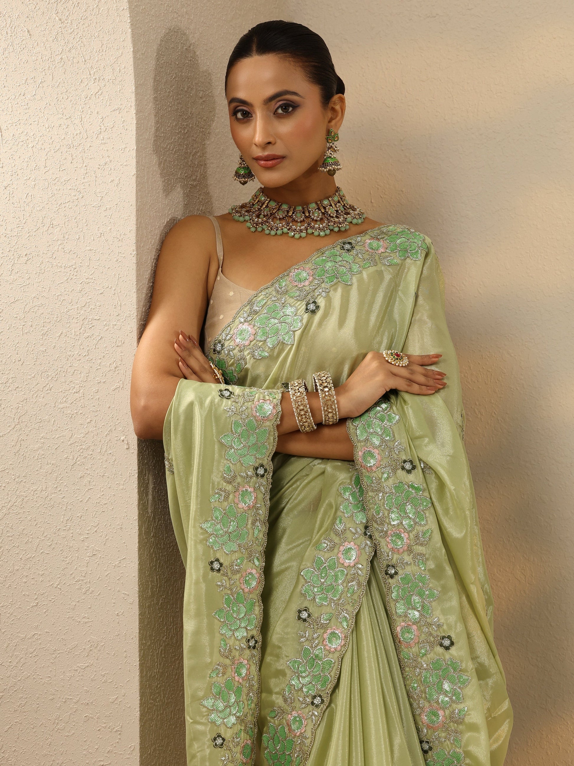 Green Embellished Georgette Saree With Unstitched Blouse Piece