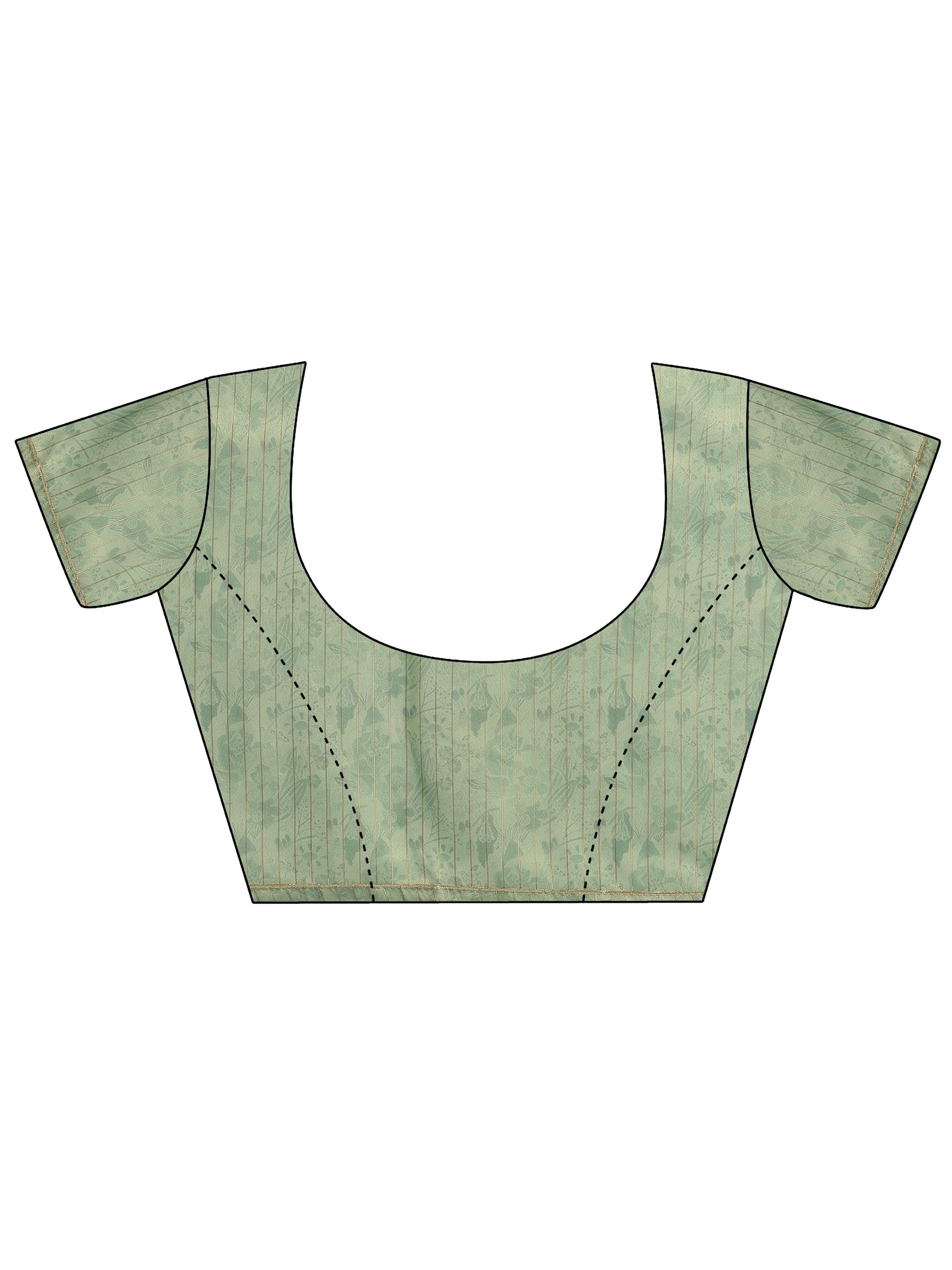 Our sea green printed nylon saree features captivating floral print. Complemented with a blouse piece. This charming saree is perfect for festive occasions.