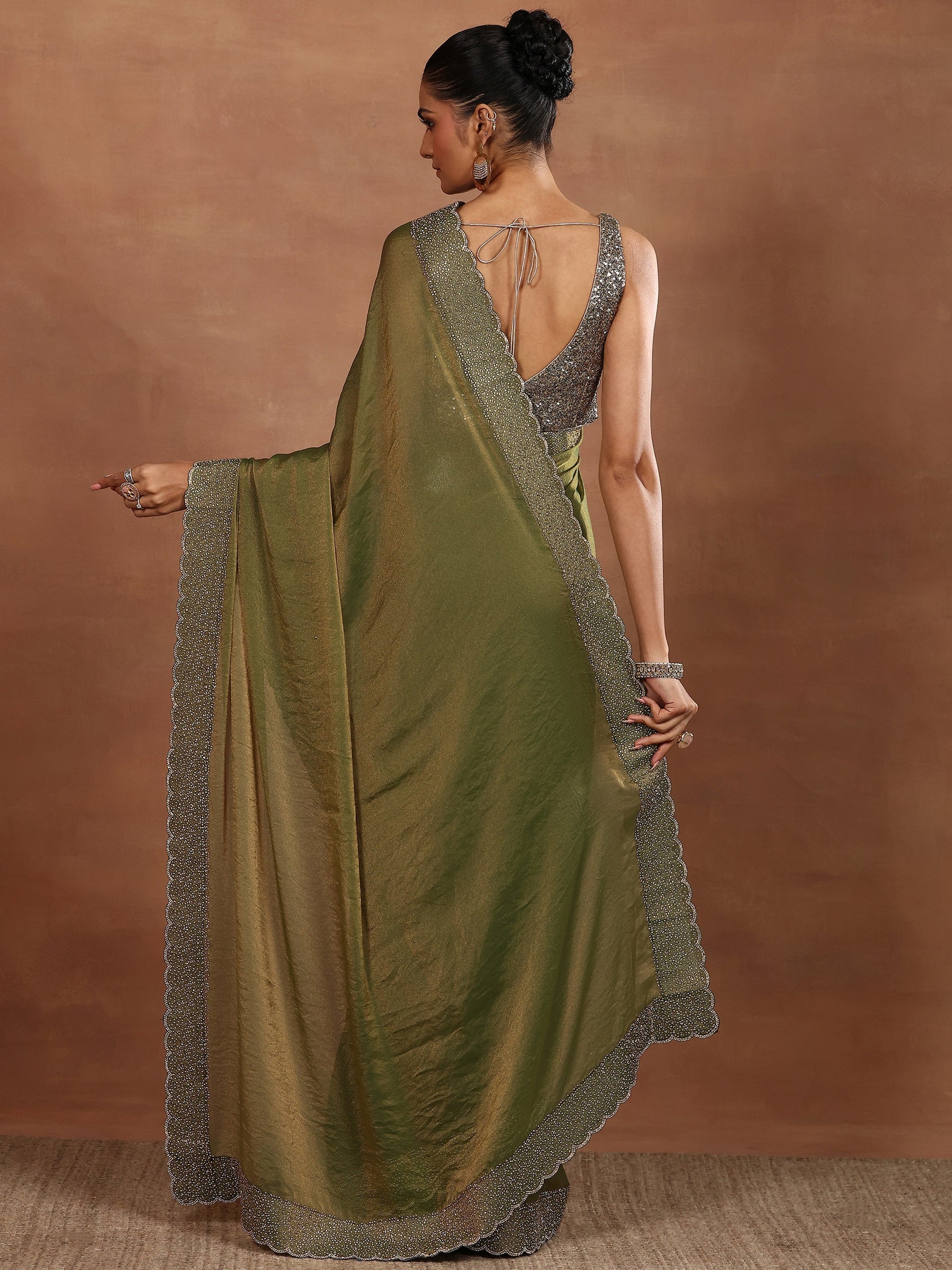 Green Embellished Organza Sarees With Unstitched Blouse Piece
