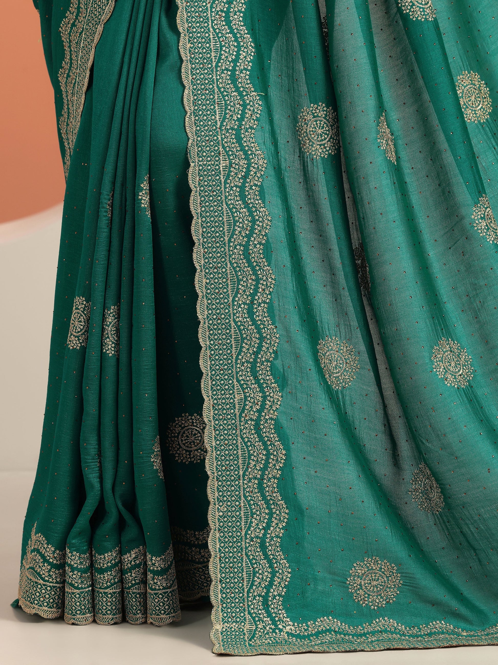 Green Embellished Silk blend Saree With Unstitched Blouse Piece