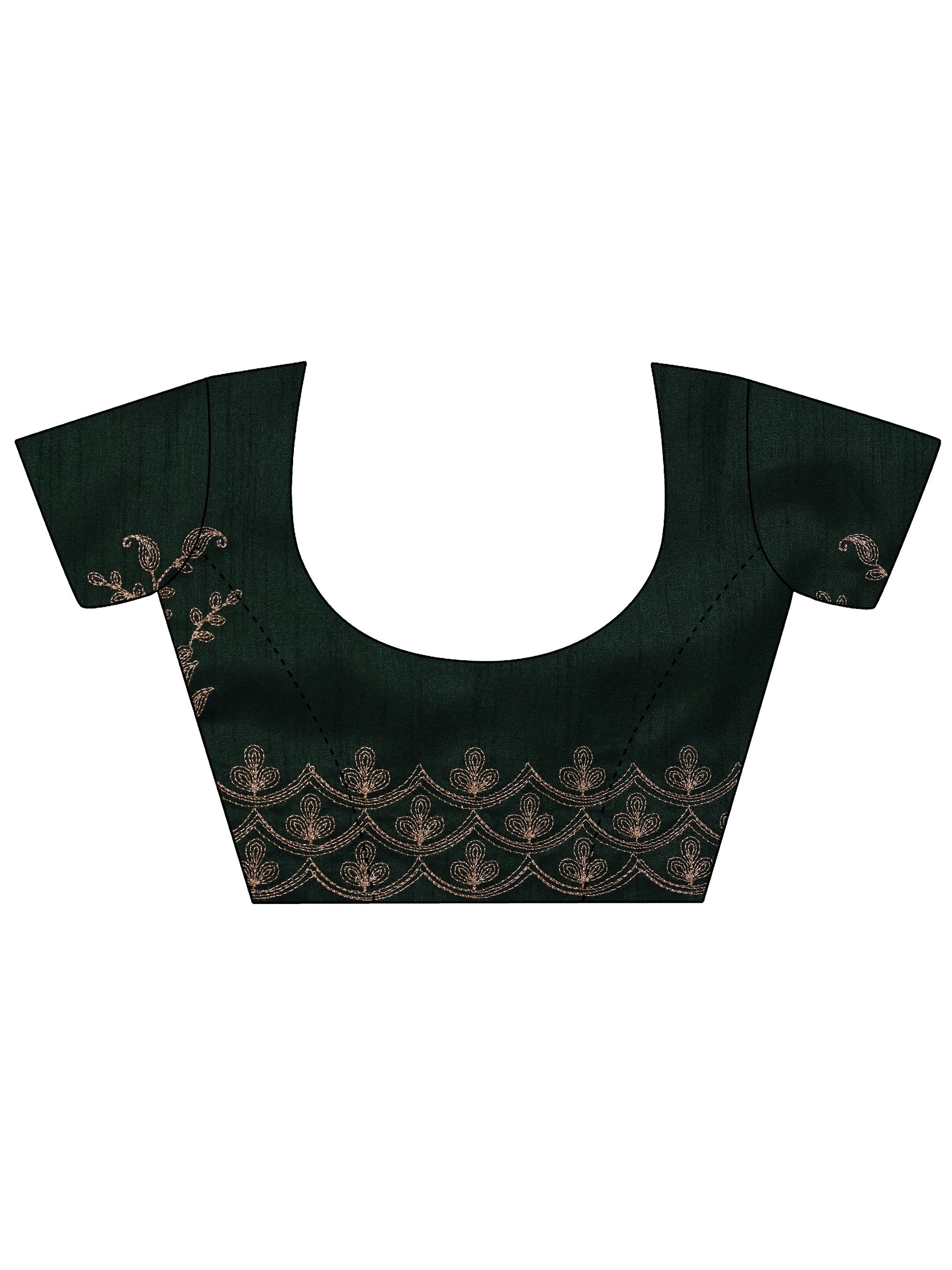 Our Green Embellished Silk Blend Saree Features Captivating Embroidery Print. Complemented With A Unstitched Blouse Piece. This Charming Saree Is Perfect For Festive Wear