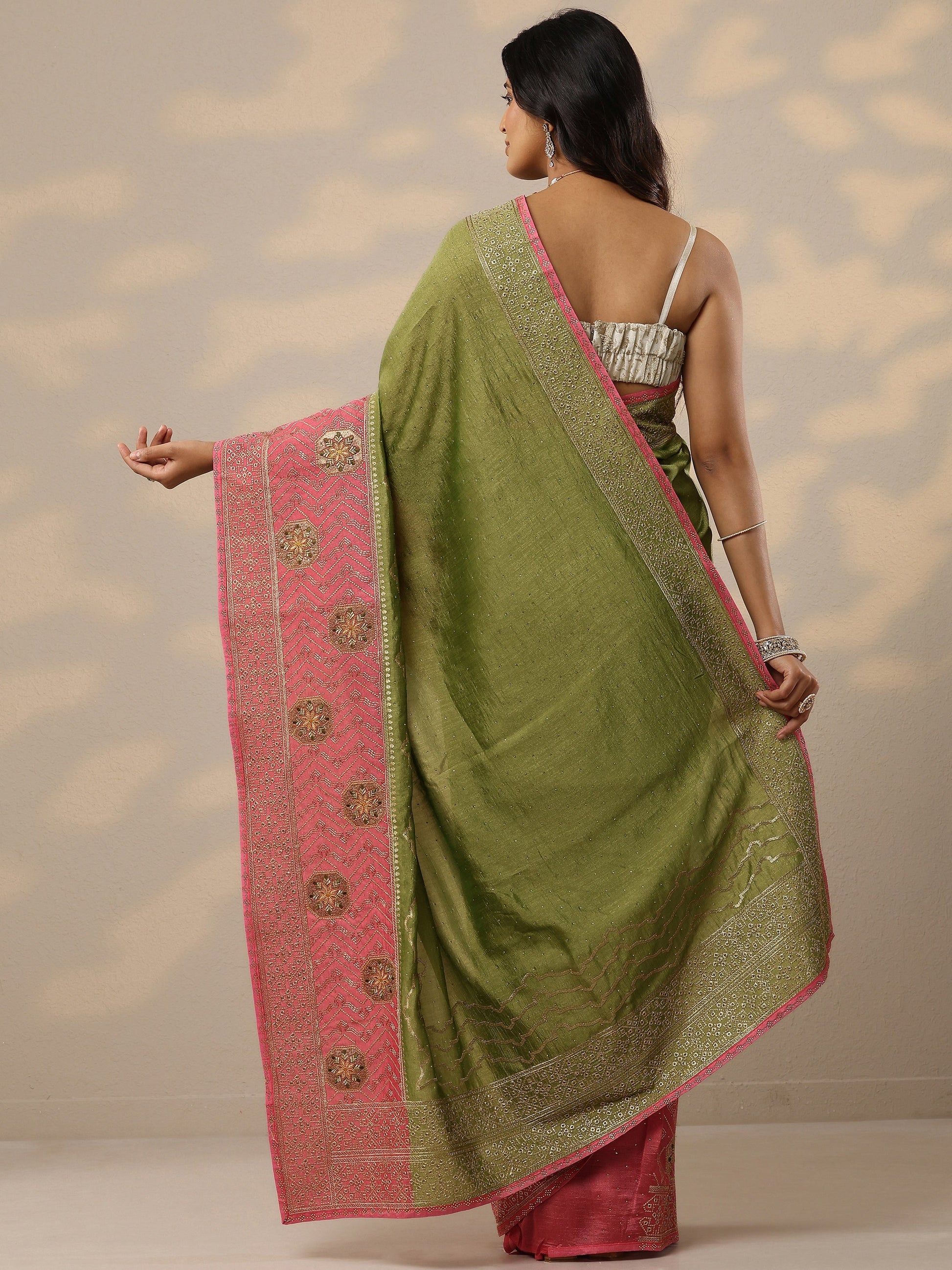Green Embellished Silk Blend Sarees With Unstitched Blouse Piece