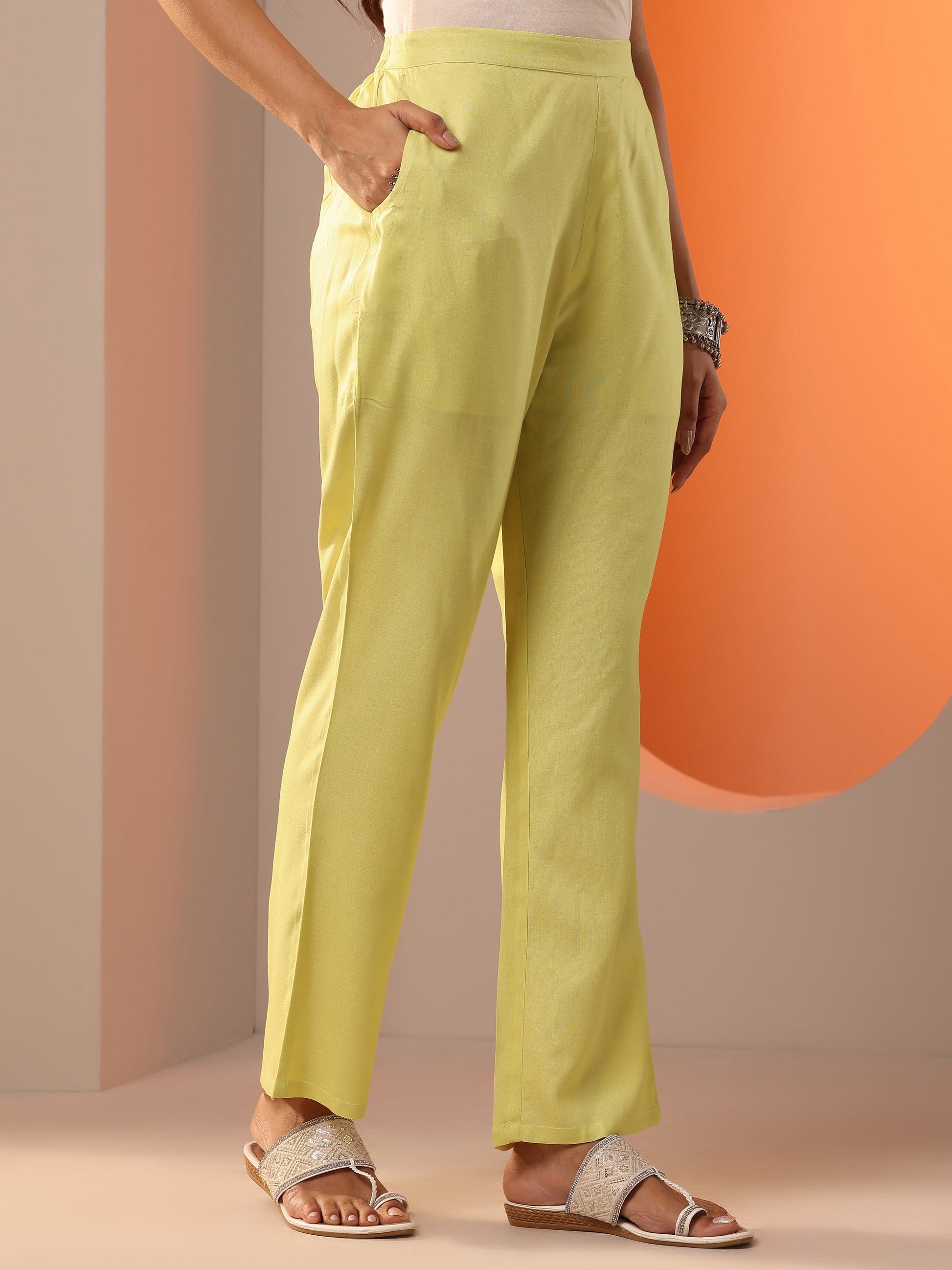 Our 3-piece yellow cotton straight-fit kurta set features a notched neckline, regular sleeves, and a statement yoke. Complemented with straight pants with a partially elasticated waistband and 2 pockets, and an embroidered dupatta. Adorned with floral embroidered accents, this style is perfect for festive occasions.