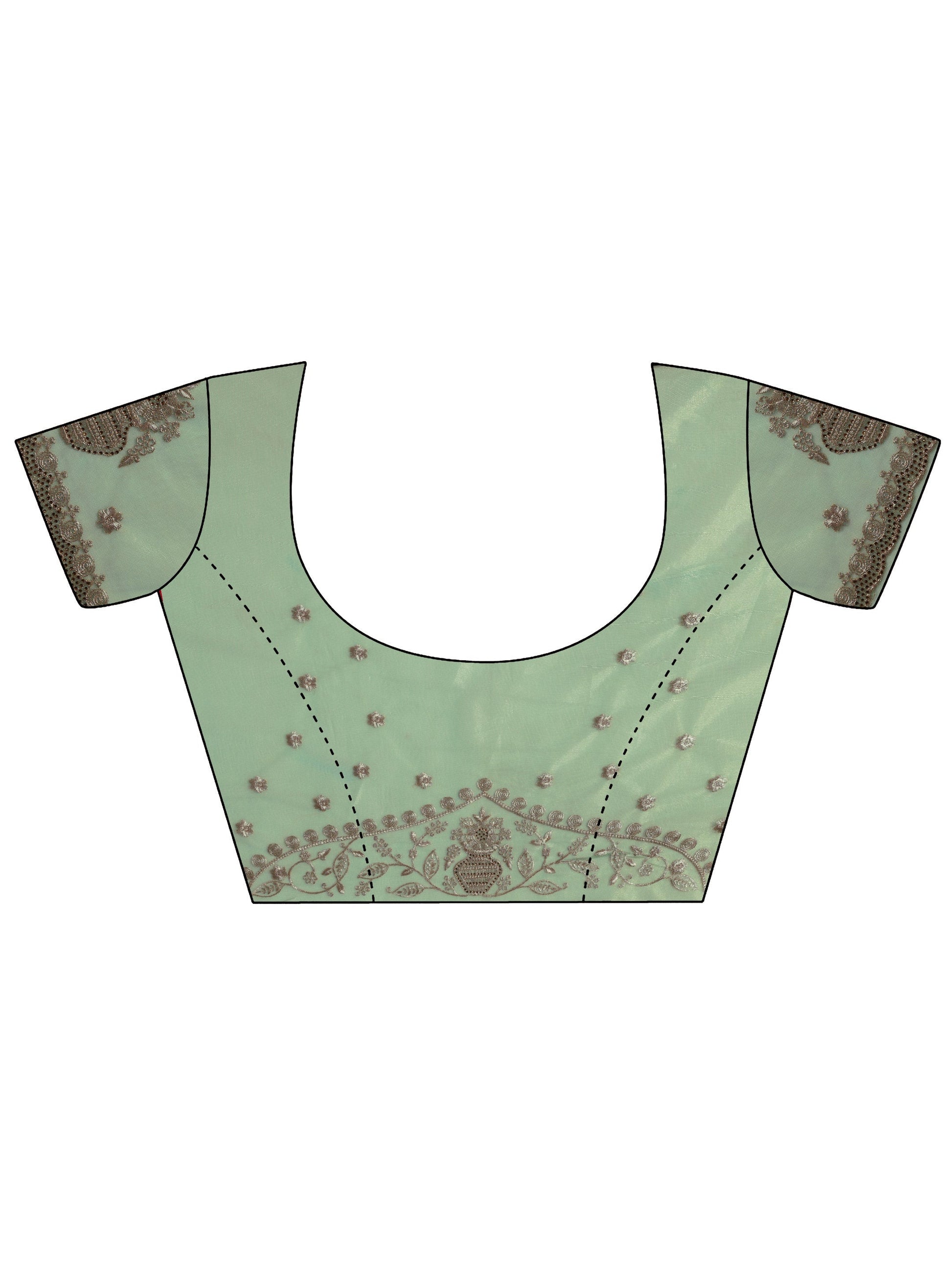 Green Embroidered Nylon Saree With Unstitched Blouse Piece