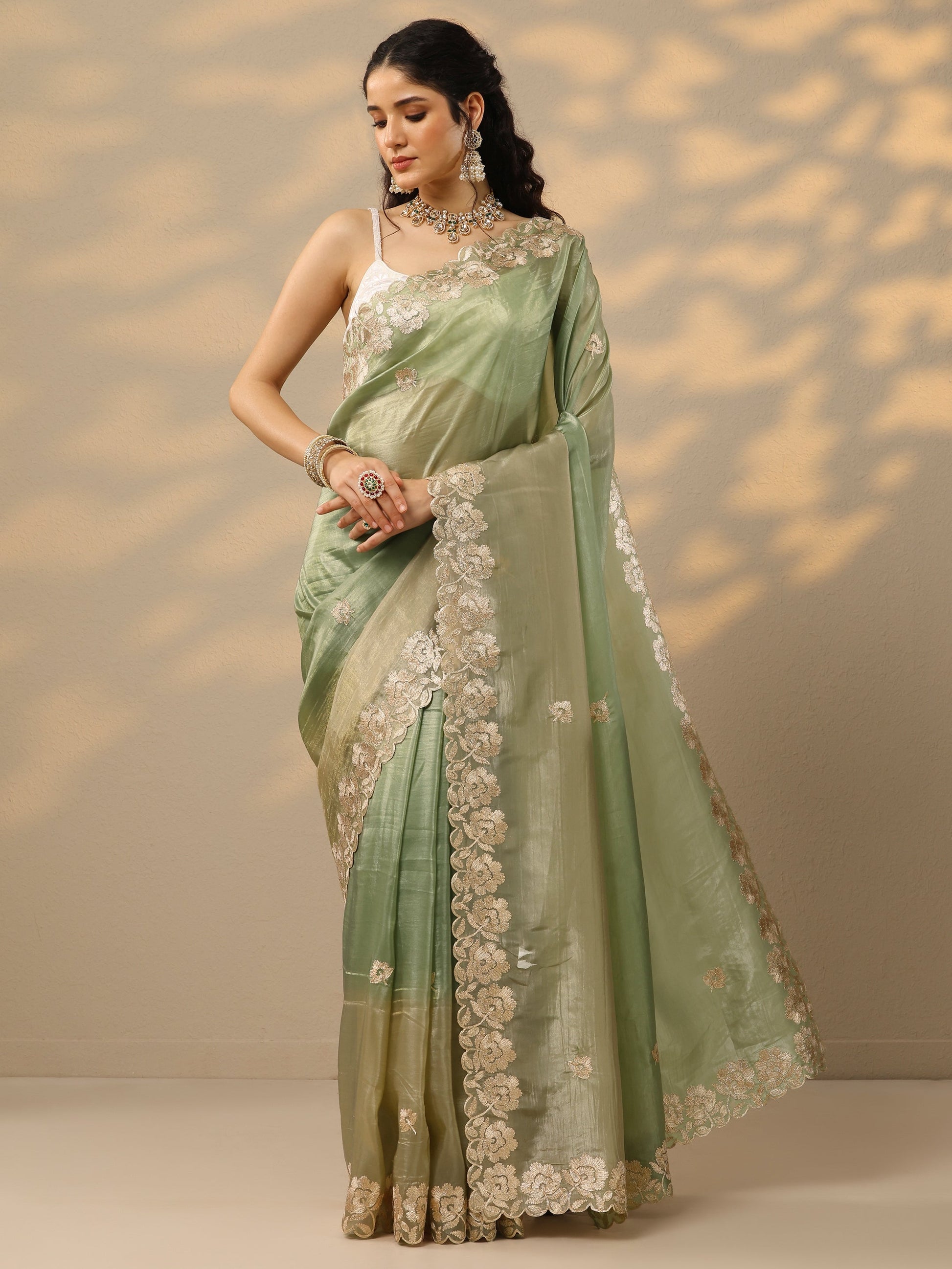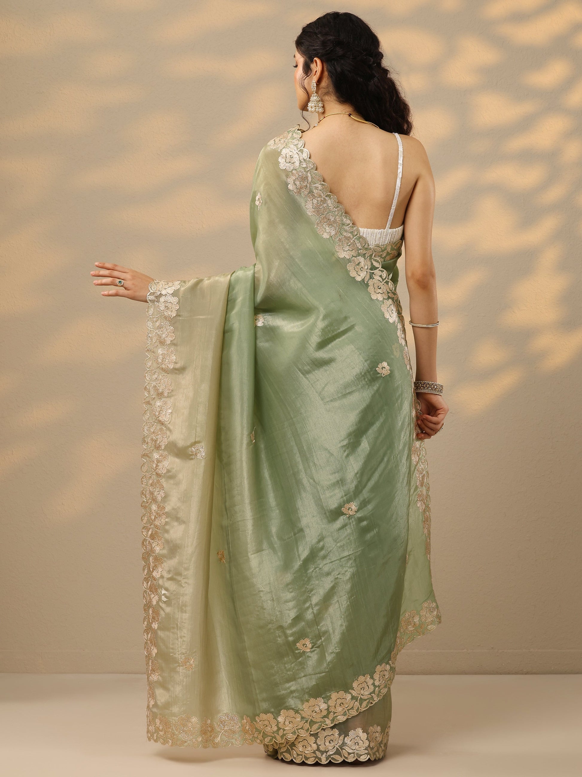 Green Embroidered Organza Saree With Unstitched Blouse Piece