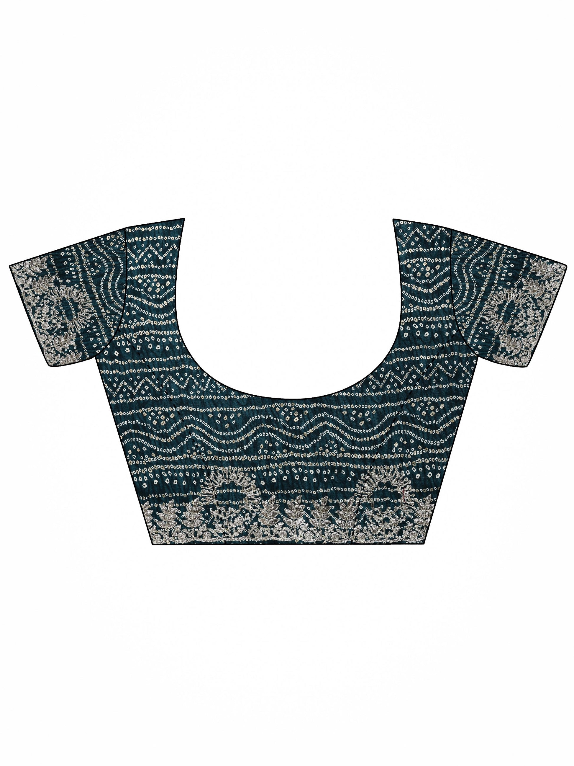 Our sea green organza saree features captivating na print. This charming saree is perfect for occasion.