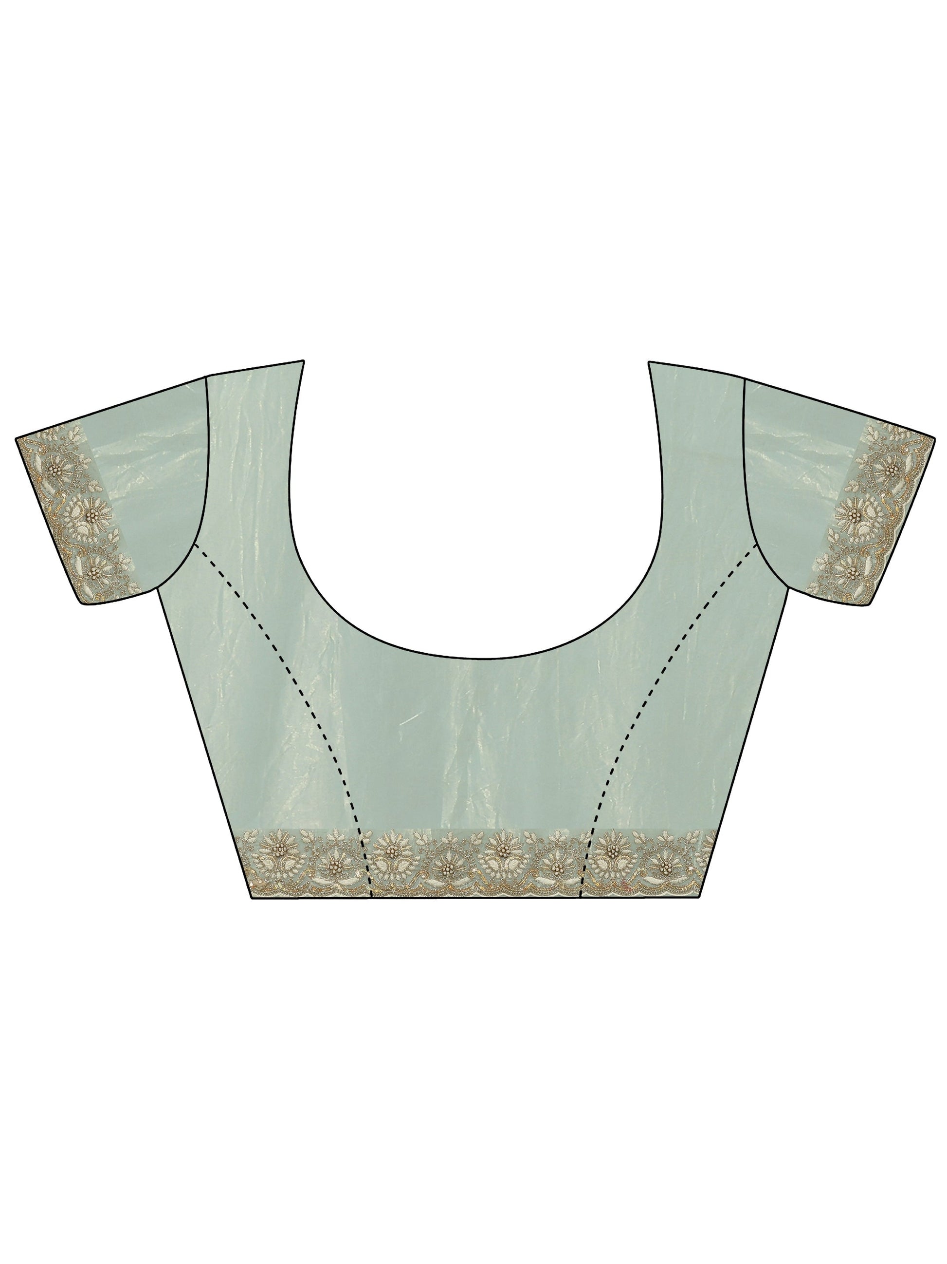 Green Embroidered Organza Saree With Unstitched Blouse Piece
