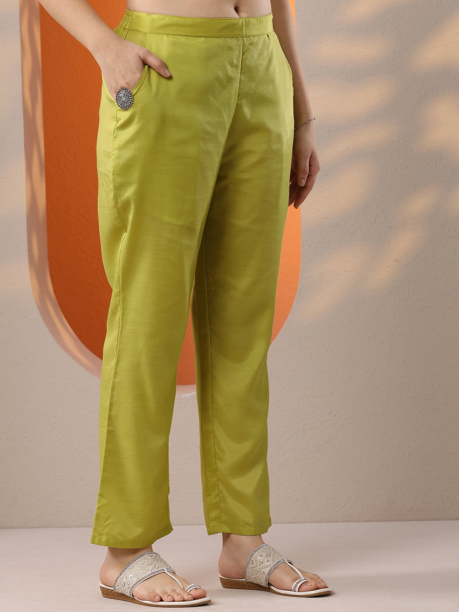 Our 3-piece Lime Green cotton blend Straight-fit Kurta Set features a Round Neckline, Regular Sleeves, and statement Yoke. Complemented with Straight Pants with a Partially Elasticated waistband and 2 pockets, and an Embroidered dupatta. Adorned with Embroidered accents, this style is perfect for Festive occasions.