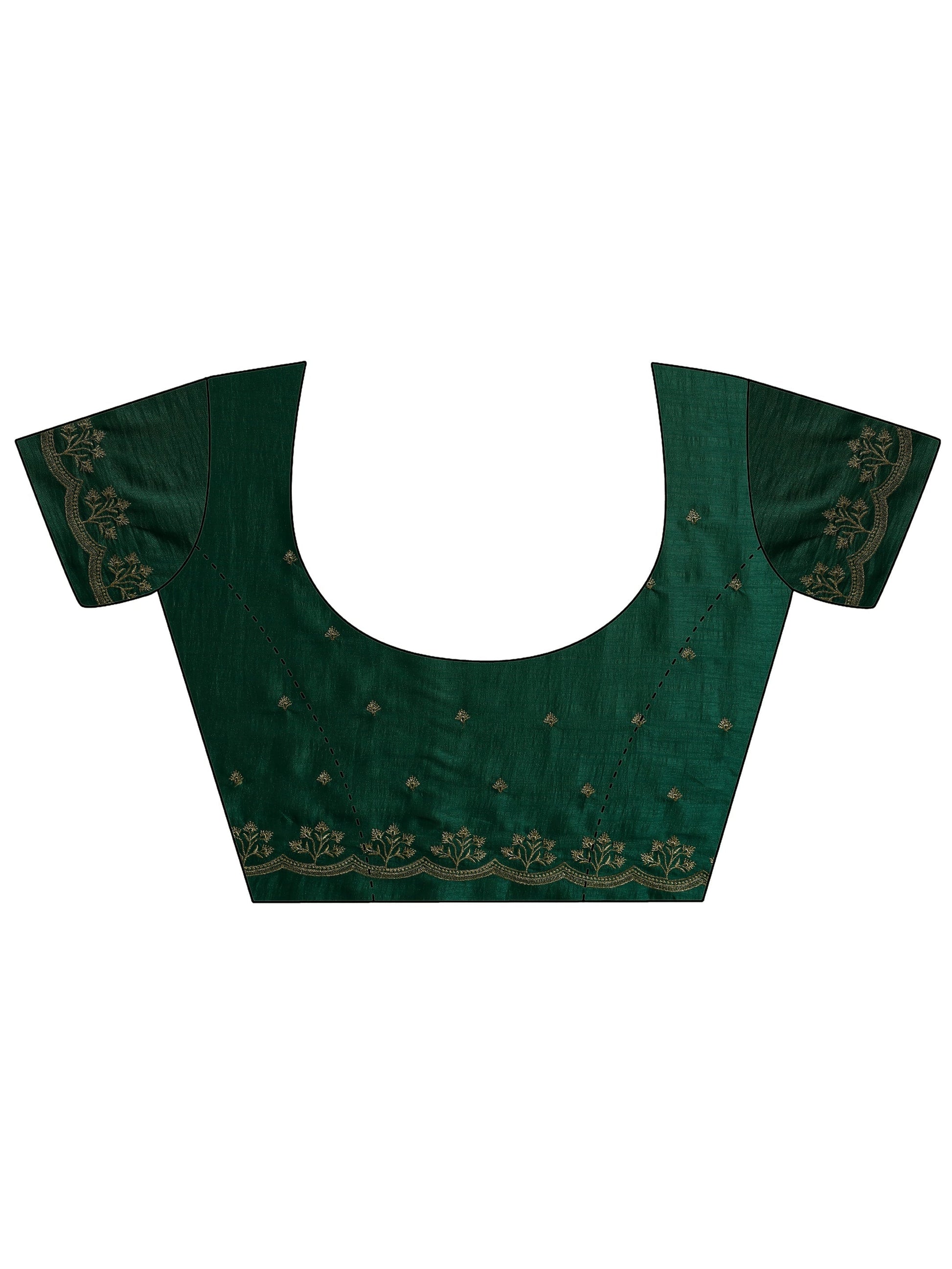 Green Embroidered Silk Blend Saree With Unstitched Blouse Piece