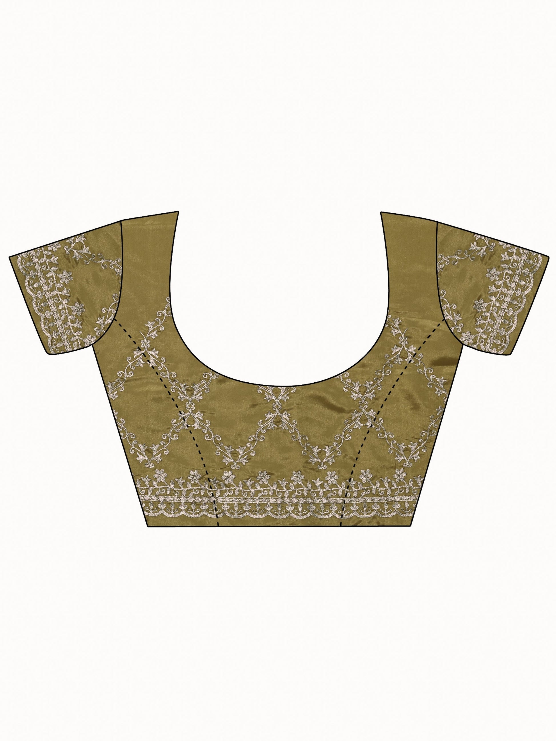 Our Olive Printed Silk Blend Saree Features Captivating Top Pattern Print. Complemented With An Unstitched Blouse Piece. This Charming Saree Is Perfect For Festive Occasions