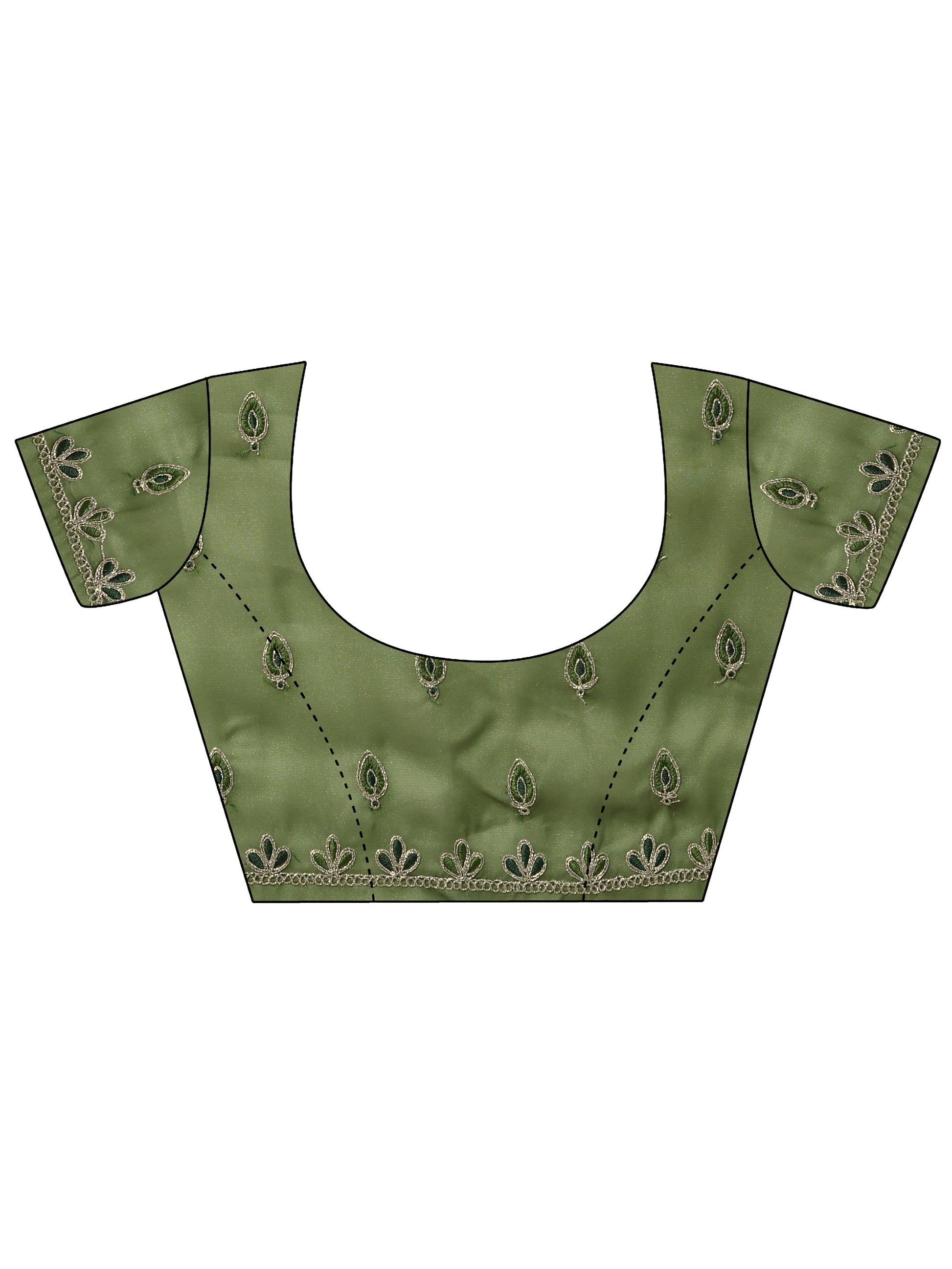 Green Embroidered Silk Blend Sarees With Unstitched Blouse Piece